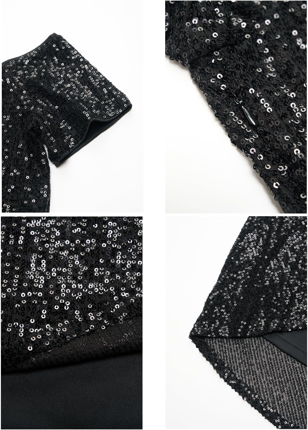 Sparkle and shine in this glamorous women’s cocktail dress! Crafted with shimmering sequins and glittering accents, this eye-catching piece will make you the center of attention at any party or special event. The off-the-shoulder design adds a flirty touch, while the short sleeves and high-low hemline create a flattering, figure-skimming silhouette. Perfect for a night out on the town or a formal occasion, this dress exudes sophistication and style. Pair it with your favorite heels and clutch for a dazzling look that’s sure to turn heads. Available in a range of sizes to suit your needs. Please refer to the size chart for accurate measurements before ordering.