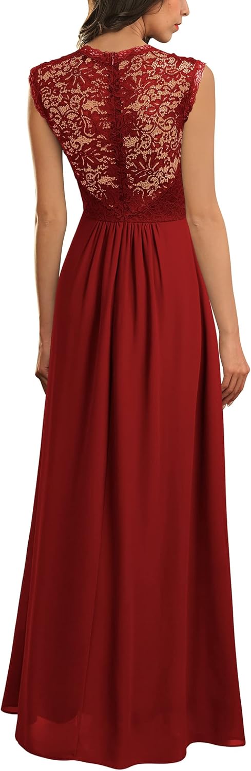Review: I don’t often spend over $50 on a dress, but I needed something a little dressier for my daughter’s wedding. I didn’t have time to shop, so I took a risk and bought it here. First, the good: The dress has a lace top. Lace has a tendency to be stiff and scratchy. This lace is soft and feels good. The dress is made of a somewhat stretchy material, so even the odd bod will have a good fit. The waist is higher, sitting just below the bust line. This means those who have given birth and bear a bit of midriff excess as a reminder will hide it nicely. I am 5’6 and weight 144…measurements are 38x32x39. I normally wear a size 6 to 8. I ordered a large and it fit me beautifully with room for that piece of wedding cake. My daughter who is 5’7 weighing 122 who normally wears a 2-4 wanted to try it on because she thought it was so beautiful. She said despite the fact that the dress was a tiny bit loose on her, it still looked great. The dress just graces the floor from my shoulders, so shoes will keep it off the ground. The zipper zips easily. All the seams are sewn well. Second, the bad: None. Nope. No bad stuff here. It’s five stars all the way! UPDATE: 9/9/2015…I wore this dress for my daughter’s wedding, on which occasion 4.13″ of rain fell in torrents. We held the wedding on our island, and following my saturated guests’ leads, I jumped off the bridge and SWAM IN THIS DRESS! 1. The dress was STILL comfortable and STILL held up well despite my lunacy. 2. The dress came clean and looks as good as new. After my swimming expedition, I still received compliments on how pretty the dress looked!!! I wore a dark blue bra with the dark blue dress, and it looked just fine. I wore 1″ heels with it, and I did find I had to pick up the hem as it dragged a couple inches. If I were a seamstress or had a little more time, I might have hemmed it up a bit. I am sorely tempted to cut it to tea length so I can wear it again. Or…maybe I’ll buy another one in green???