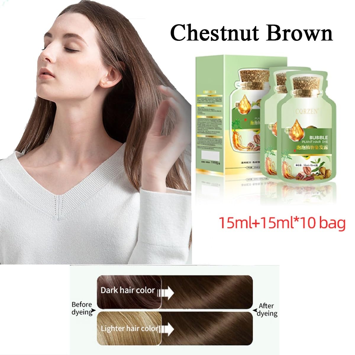 Bubble plant hair dye shampoo use natural plant formula,no contamination of scalp,natural effect,no hair injury.It is also nourishes, protects and repairs scalp