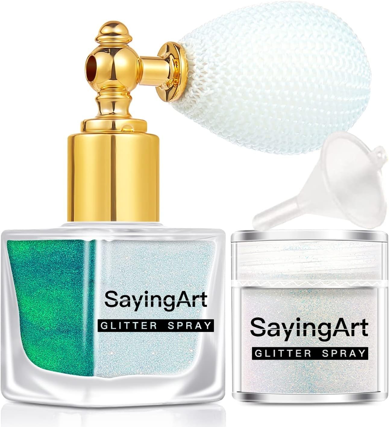 SayingArt glitter spray design with French formula bottle, fill of finest loose sparkle glitter without gel/glue/adhesive. The glitter spray offer TWO series including glow and not glow, special shiny galaxy glitter shine for your look