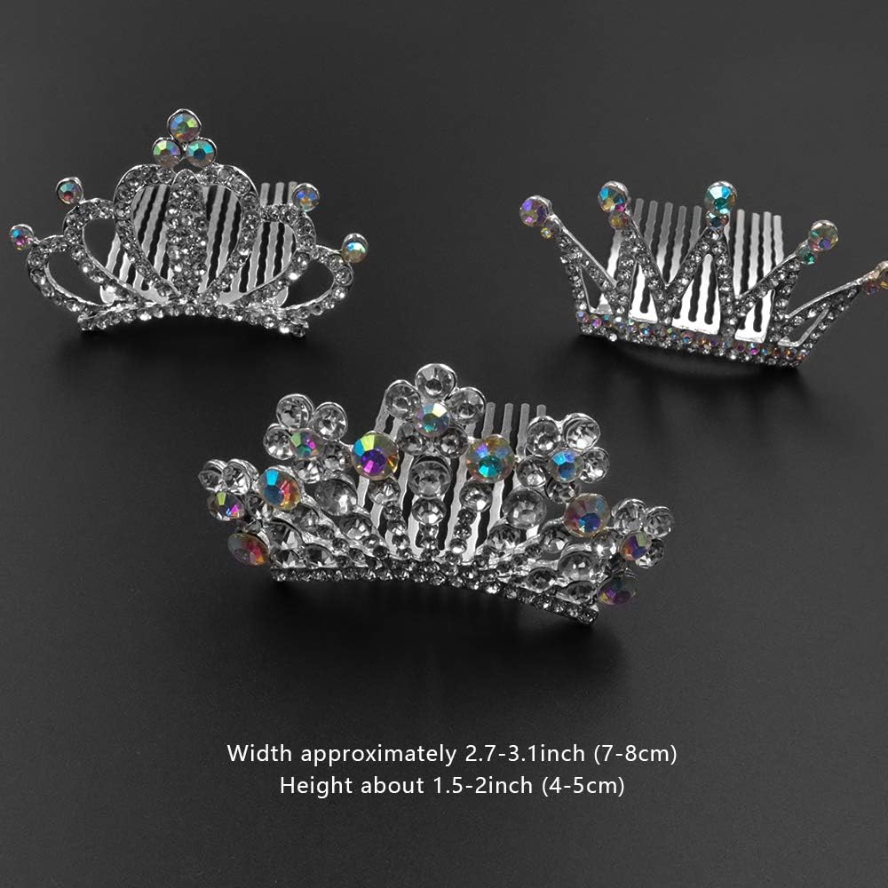 Material: High Quality Alloy and RhinestonePackage: 3 Pieces of crystal tiaras for girls with hair combApproximate size: 7-8 cm x 4 cm (L x W)