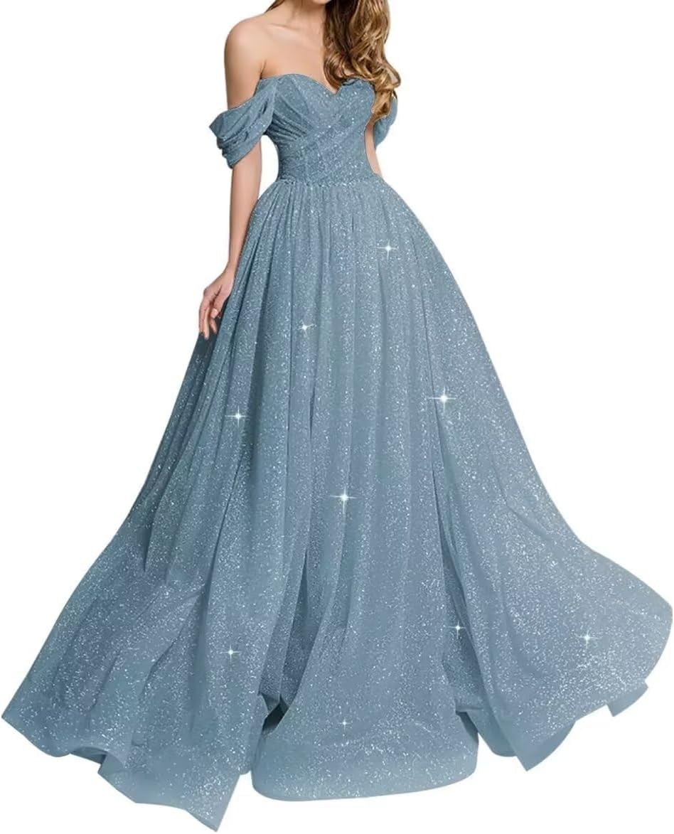 Sparkly Tulle Long Formal Dresses Off The Shoulder Quinceanera Dress for Gilrs
