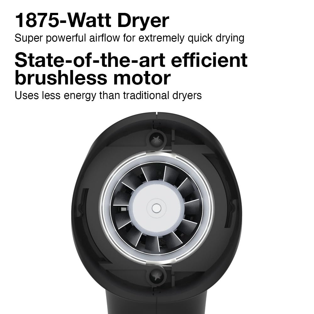 Super powerful airflow for extremely quick drying100,000 RPM long lasting BLDC brushless motorEfficient brushless motor uses less energy than traditional dryers