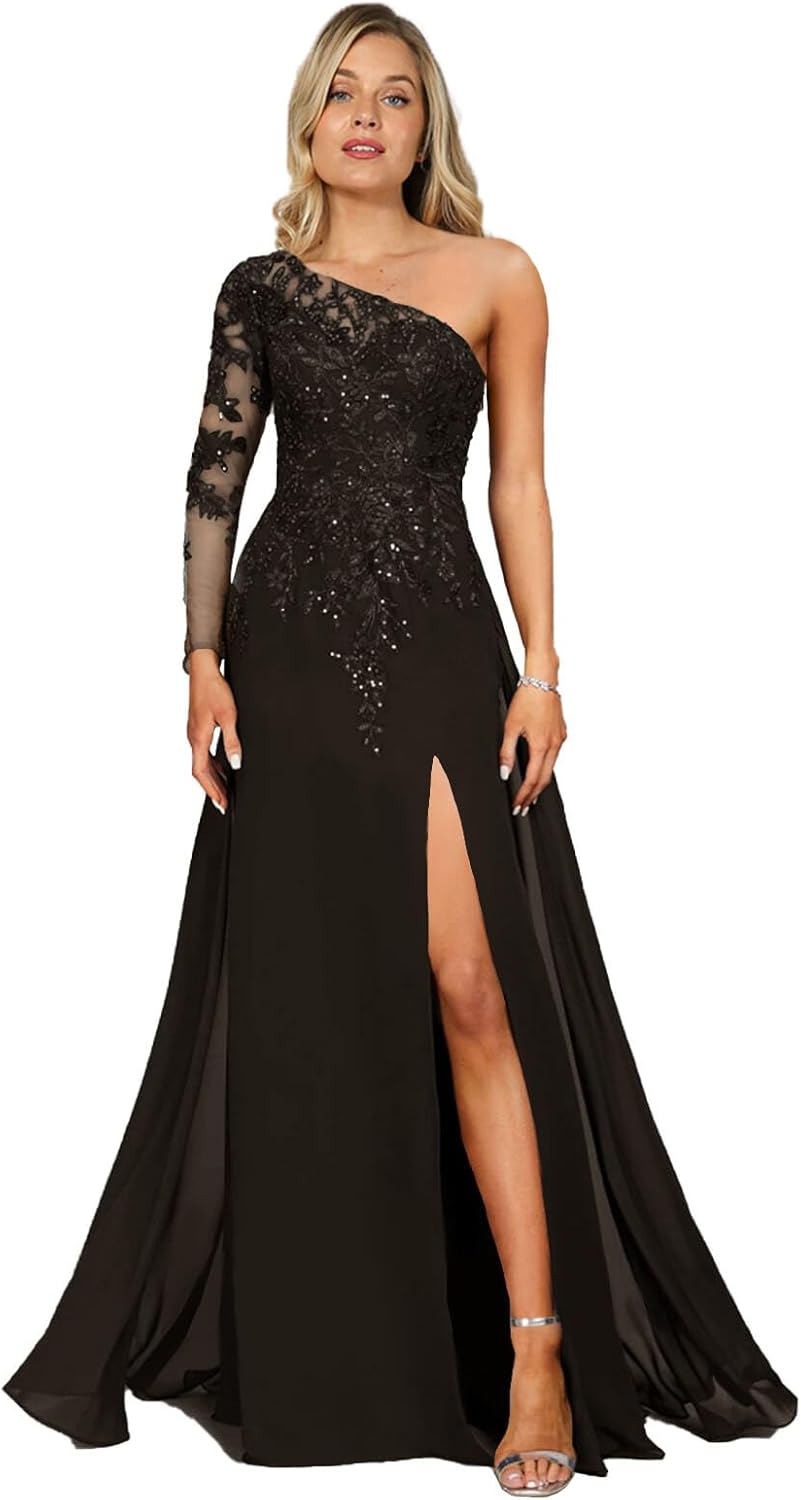 BUYER SHOW One Shoulder Mother of The Bride Dresses Lace Formal Dresses Slit