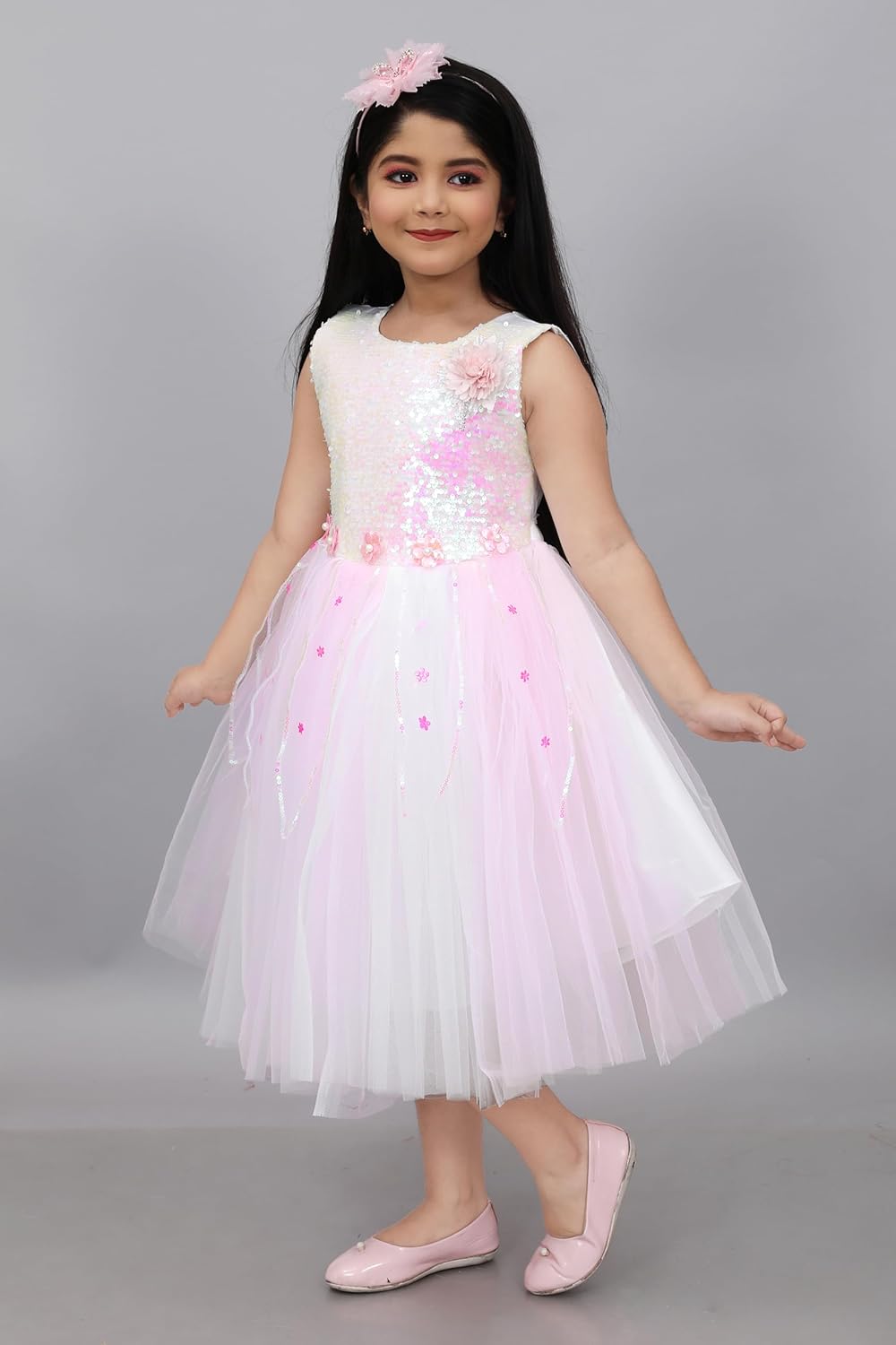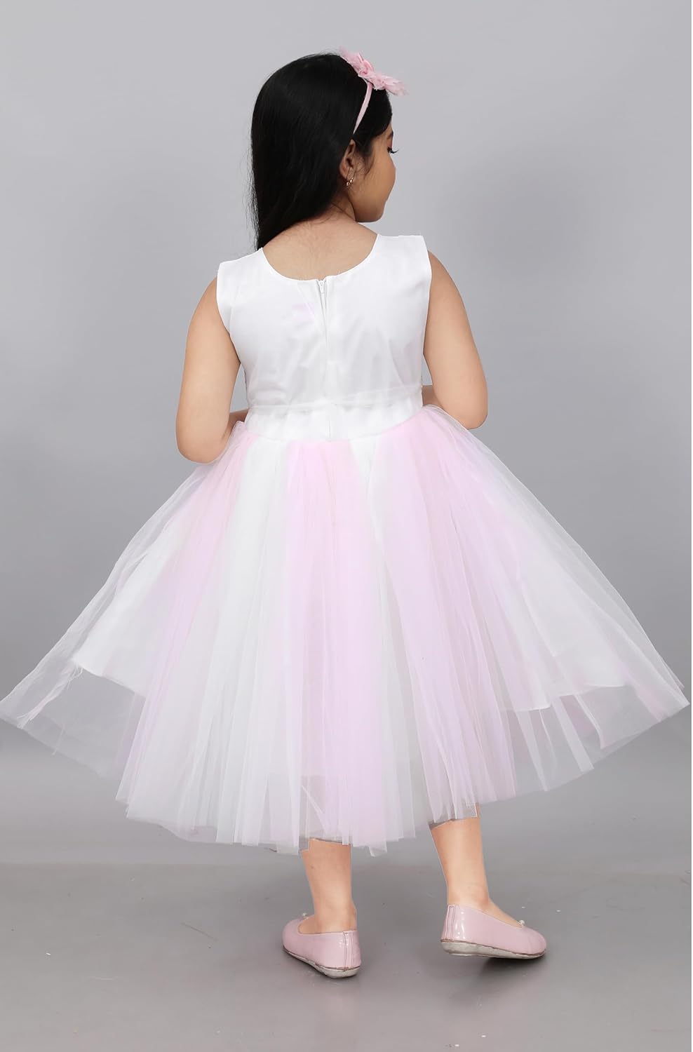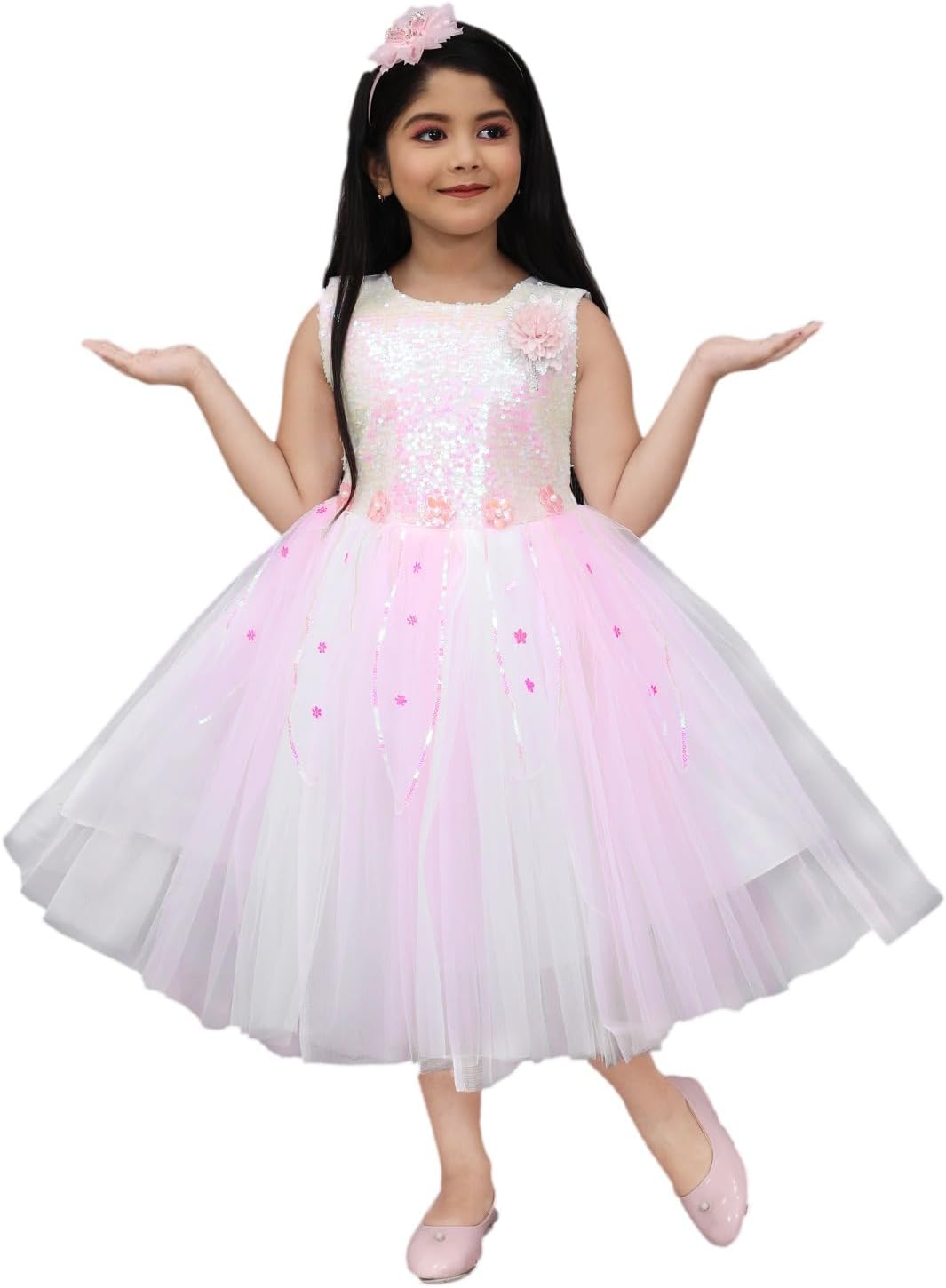 Wedding and Baby Dress in Pink and White Color. Elegant Design: Sleeveless Princess Wedding Dress for toddler girls with a charming Delicate Flower Embellishments: Adorned with intricate flower details