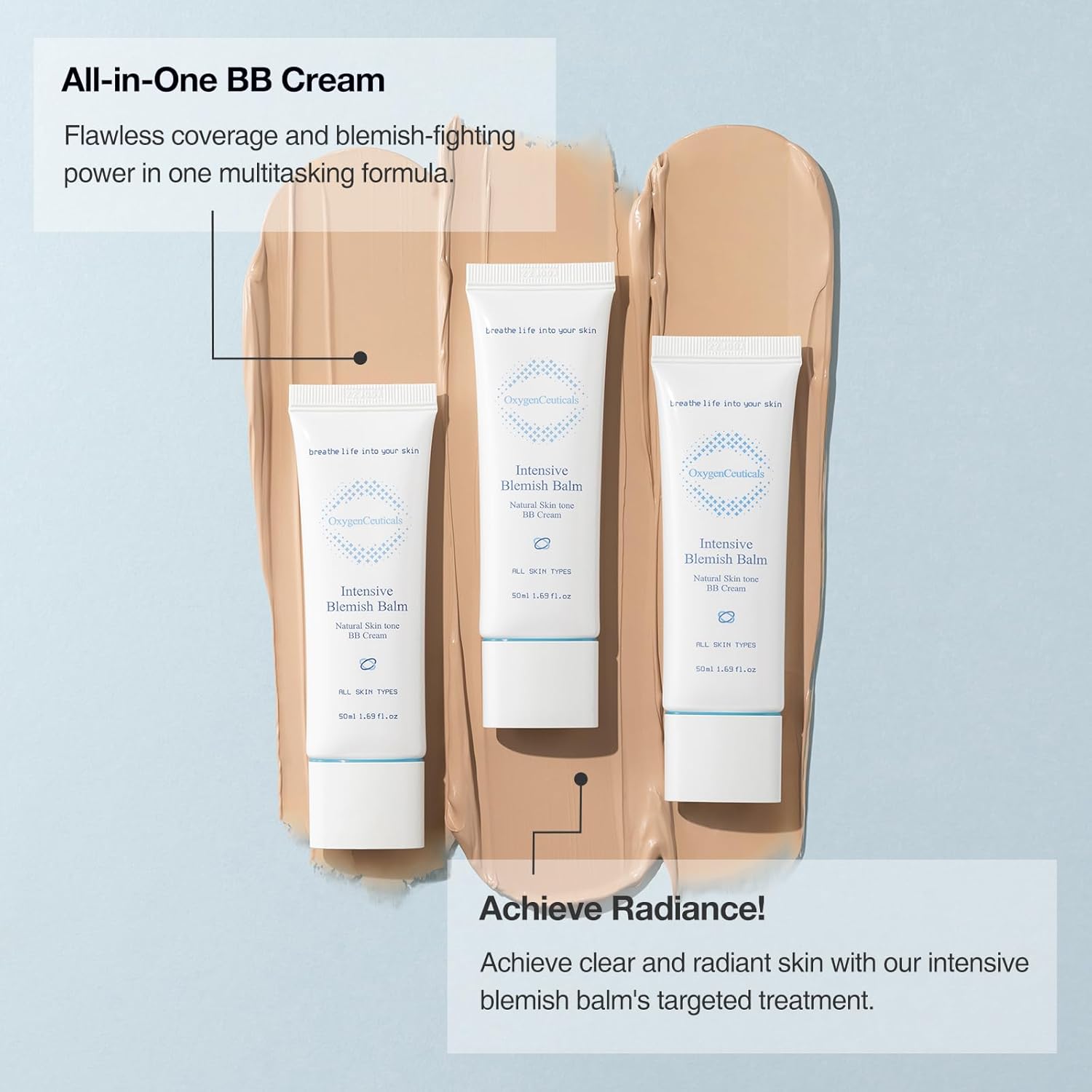 💧 A PERFECT TINTED MOISTURIZER: Our Intensive Blemish Balm is a skin-perfecting tinted moisturizer that helps boost your naturally luminescent glow and support fresh, healthy skin. It provides a sheer tinted coverage blends and perfects your skin tone. Enjoy this Korean Skincare Treatment to see your skin looking flawless and even-toned.