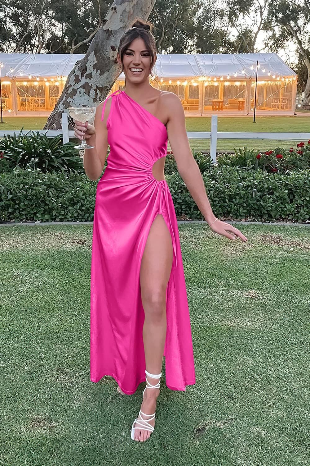 This One Shoulder Maxi Dress Highlights Your Delicate And Smooth ShoulderSide Cutout Design Adds A Sense Of Unique And Gorgeous, More Stand Out