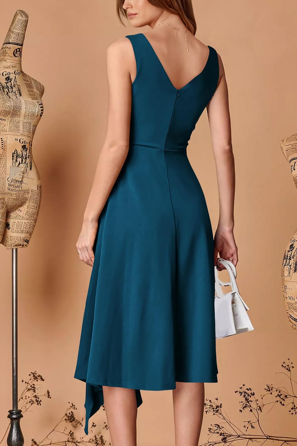 PRETTYGARDEN Womens Open V Back Dresses Asymmetrical Ruffle Hem Dress