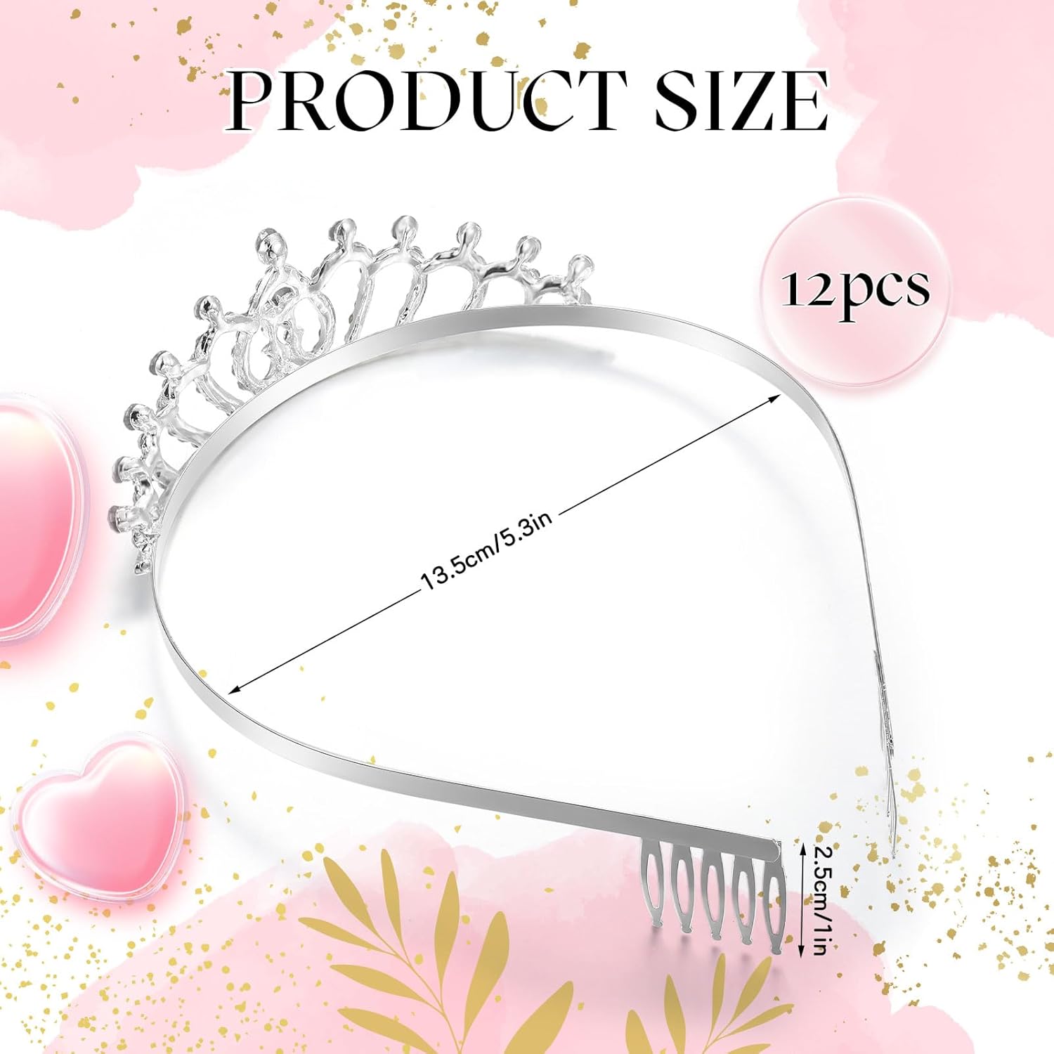 Review: For the price of these twelve tiaras I am very impressed. They are sturdy, none of them were missing stones, the teeth that go into your hair were only slightly bent but once I bent them back they were perfect and it did not mess up the tiara at all. I ordered these for an adult prom I am hosting, while I got bigger crowns for the “prom queen and king” I wanted to have all the ladies walk away with a little something. These are perfect!