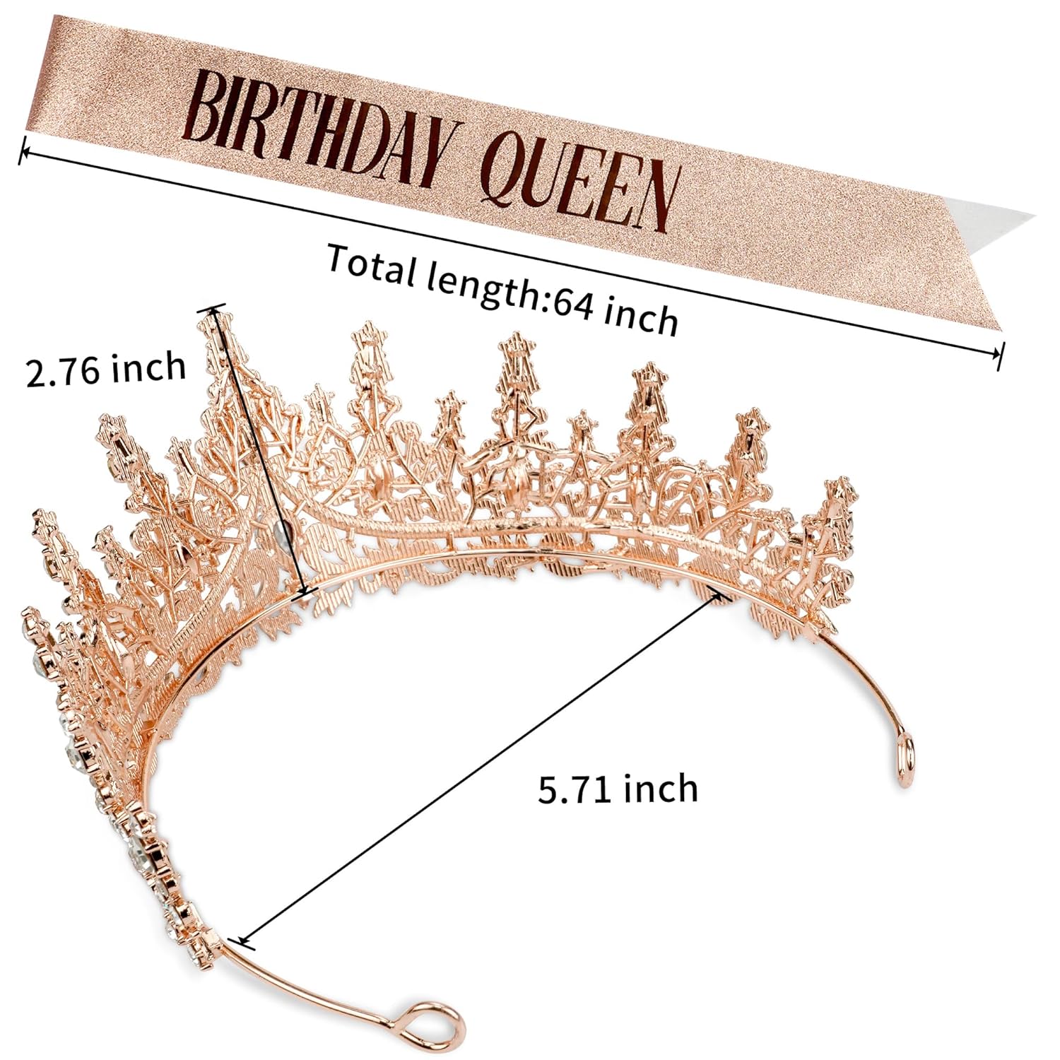 PERFECT BIRTHDAY SET: Glittering “BIRTHDAY QUEEN” birthday sash and rose gold princess crown to match any outfit you want. There is a round hole on both sides of the end of the princess crown, you can put the hairpin in the round hole to fix it, it is not easy to fall off, and it will fix your beauty all the time.