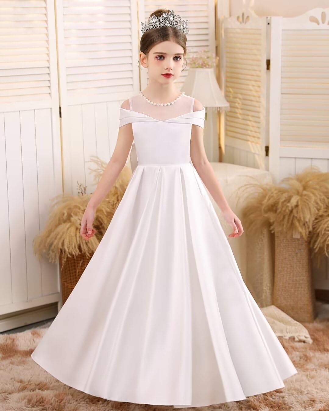 Review: Material was really thick and heavy, almost too much for my daughter to wear to her dance. Would be ideal for a walk down the aisle in a controlled environment but not much else or hot summer weddings. It is appealing and the size does run big but I was not impressed with the heavy quality of the dress overall. Definitely will require alterations to accomodate.
