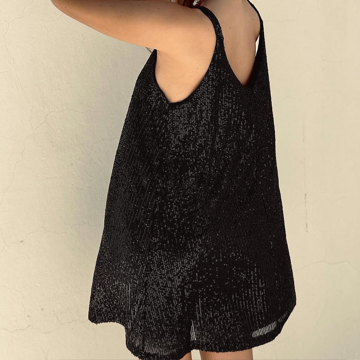 Title: Sexy Elegant Women Sequin Gallus, V Neck Sparkle Shift Dress, Sparkly Glitter Dress Size L