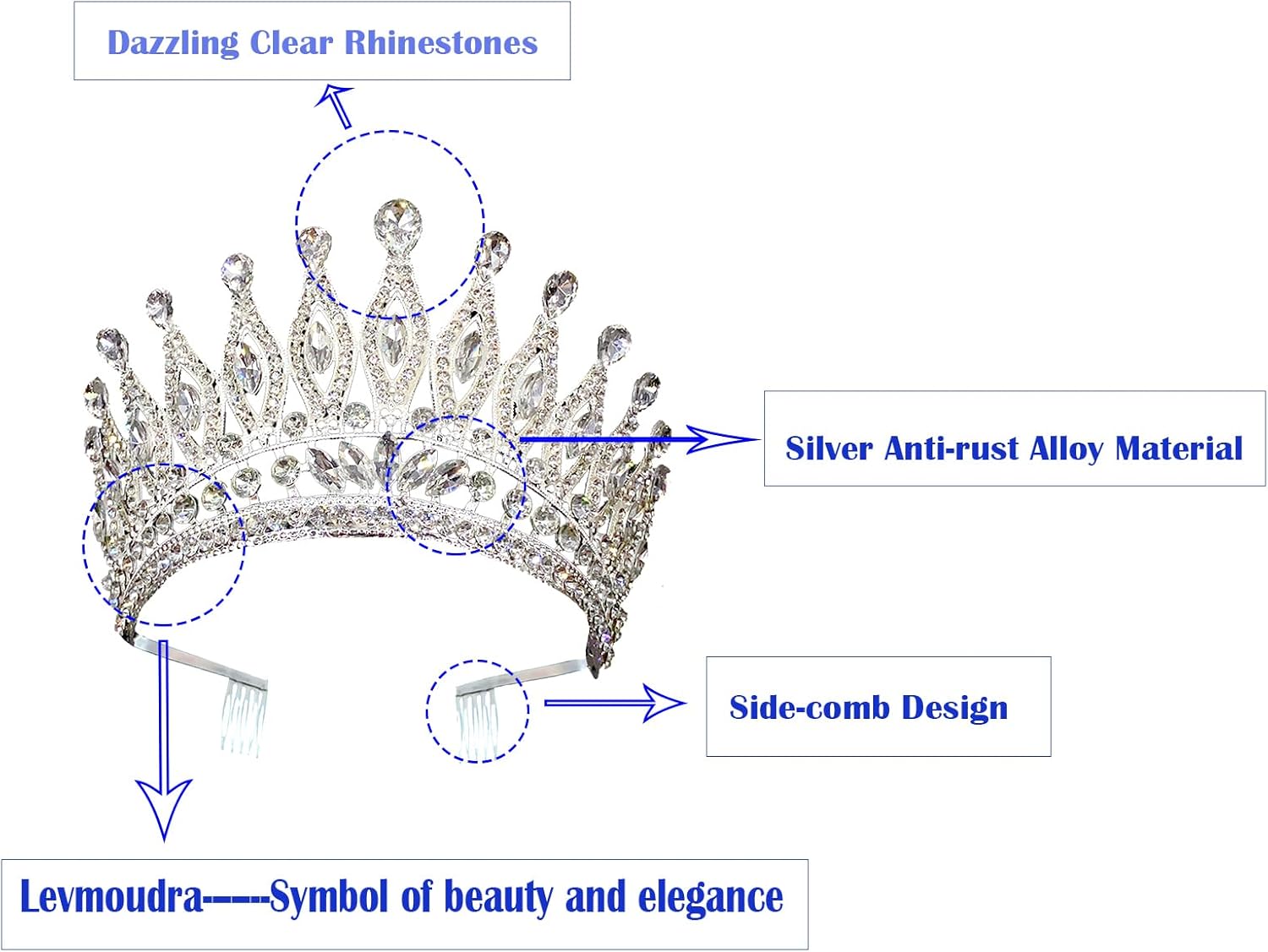 Crafted to fit women and girls and fit in your glamorous hairstyles.Every girl deserves to feel like a princess/queen on her wedding day. Pageant rhinestone tiara crown will add more charm for your outfit and make you look more elegant.