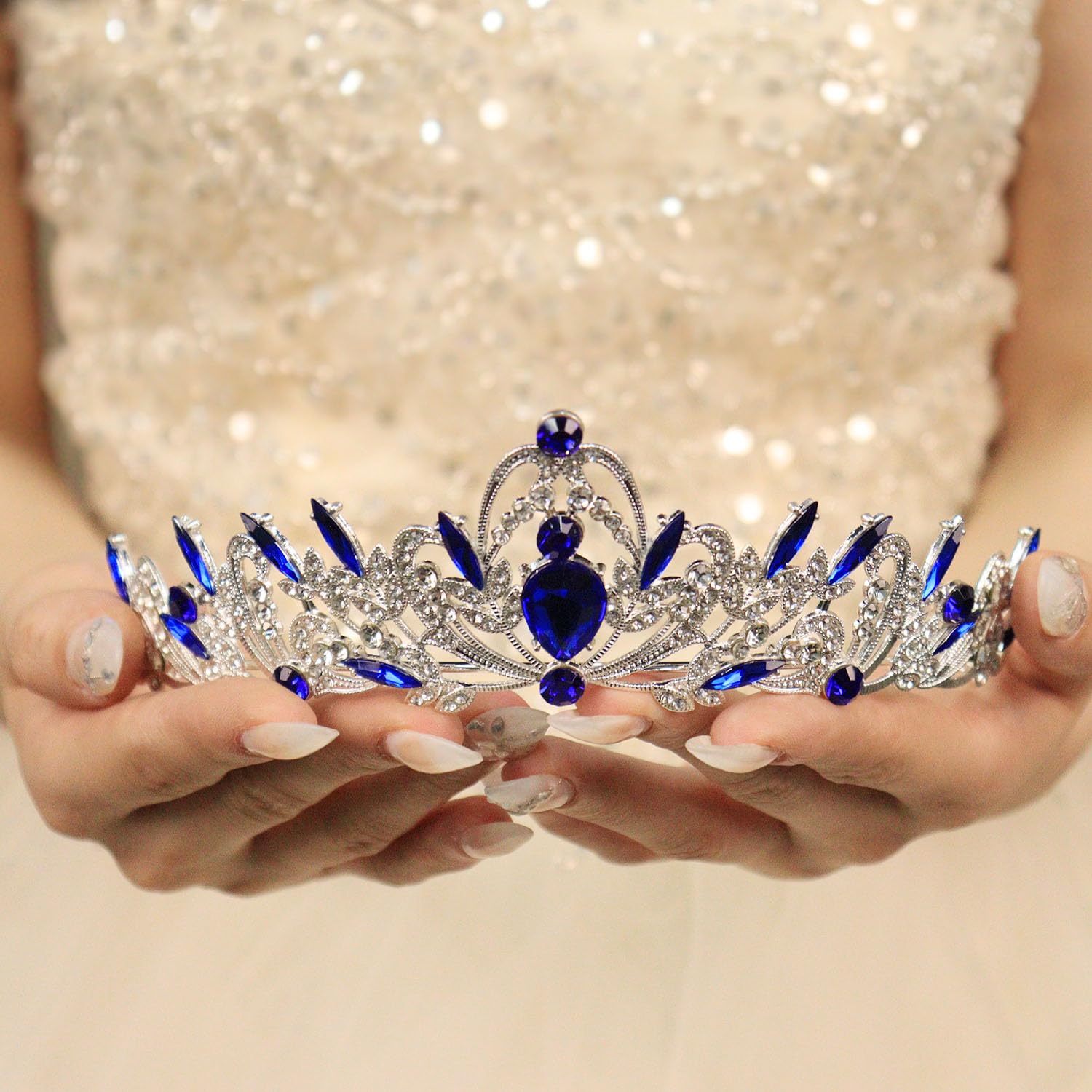 Note: Stay away from chemicals when you wear this crystal tiara crown. Take it off when you sleep or bath. There are many beautiful crowns in different styles in our store for you to look