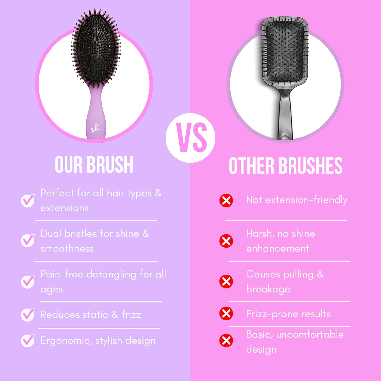 Pain-Free Brushing Experience: The gentle dual bristle design ensures smooth gliding over hair extensions without pulling, delivering effective detangling while prioritizing hair health and hair extension longevity.