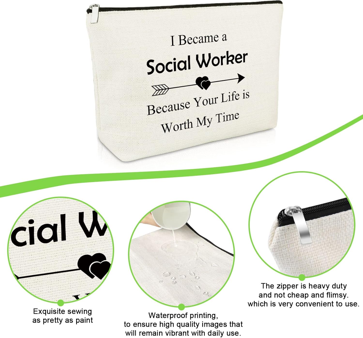 Thank You Gift for Social Worker:Social worker makeup pouch is unique presents for your social worker, special education teachers, childcare provider, clinicians, medical social worker, street worker, Therapist, counselor, physical therapist, mental health therapists, community outreach workers, volunteer, welfare workers or anyone who is in the helping others profession.