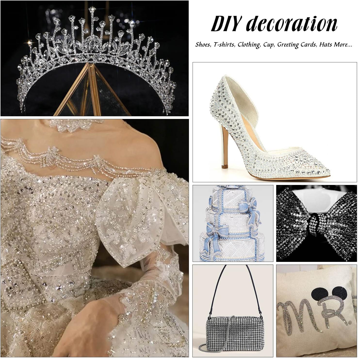 Use tweezers and Picking Pen gem picker to pick rhinestones, Hotfix Applicator or household ironer, heat press machine for heat repair and fixation, after the heat activated glue melts, stick on the object and lightly press the rhinestones for about 5 seconds. Can also be glued with E6000 glue.