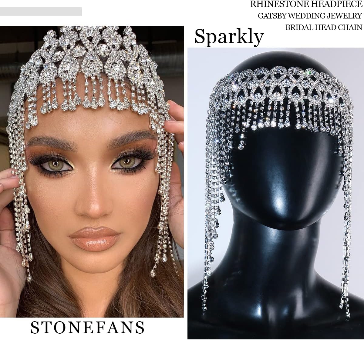 StoneFans 1920s Rhinestone Headpiece Cap Bridal Flapper Head Chain Headband Gatsby Prom Cleopatra Hair Accessories for Women