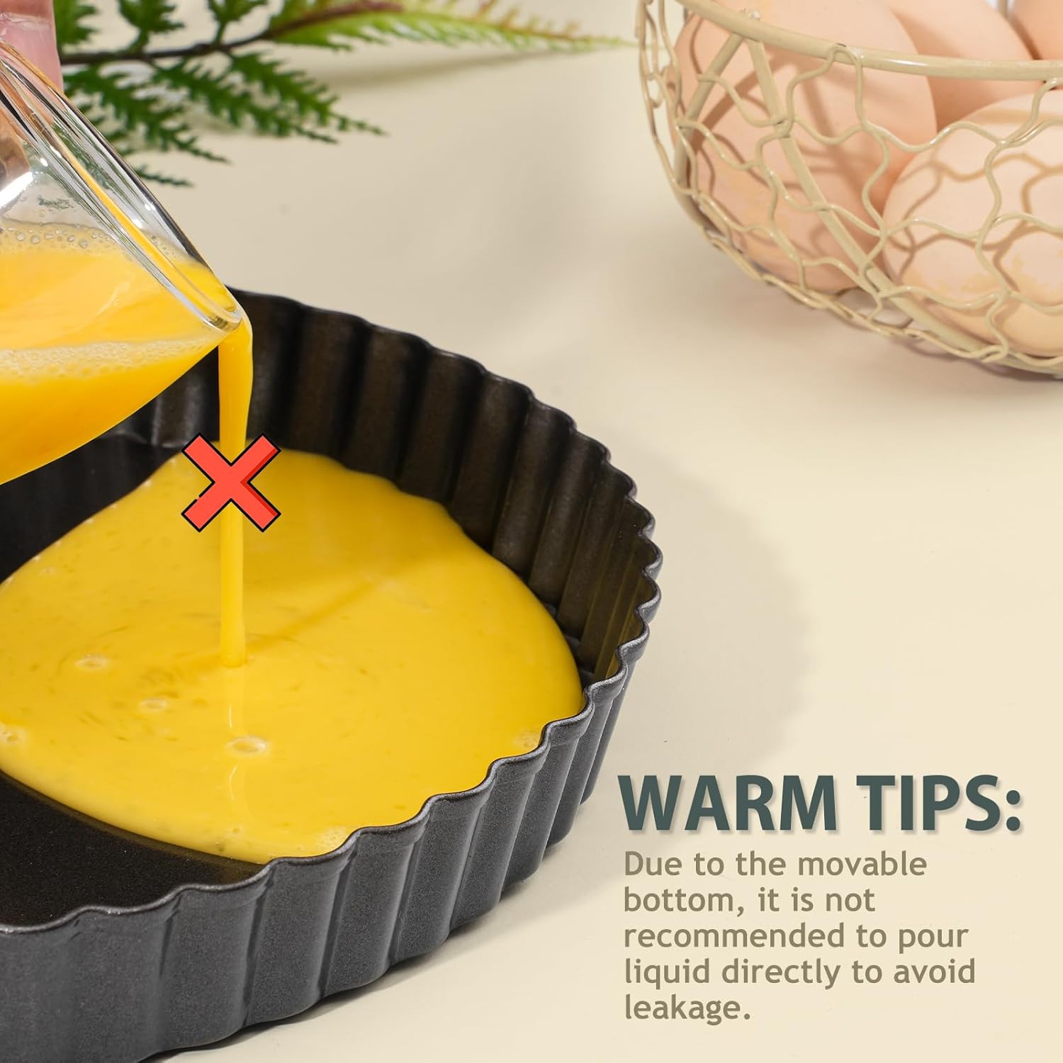 Removable Design: The bakeware features with a detachable bottom design, the bottom can be released easily from the frame, allowing you much easier to take out of the tart without marring the beautiful crust.