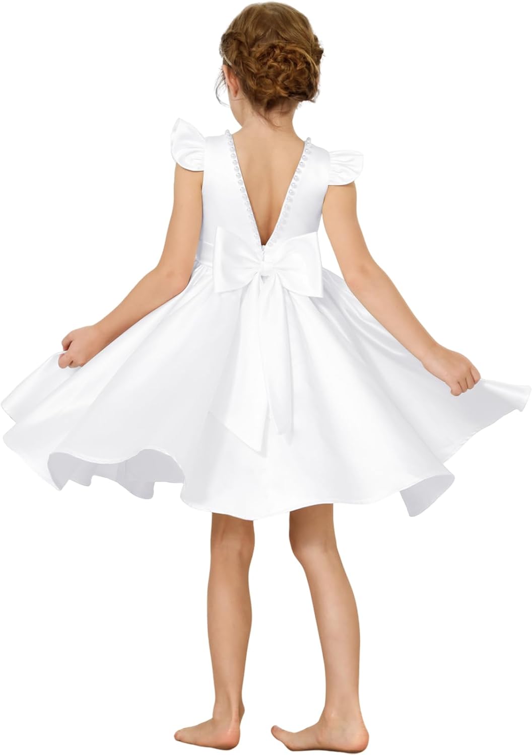 HEWEGO 2024 Summer V Back Short Flower Girls Dress for Wedding Party Pearl Beads