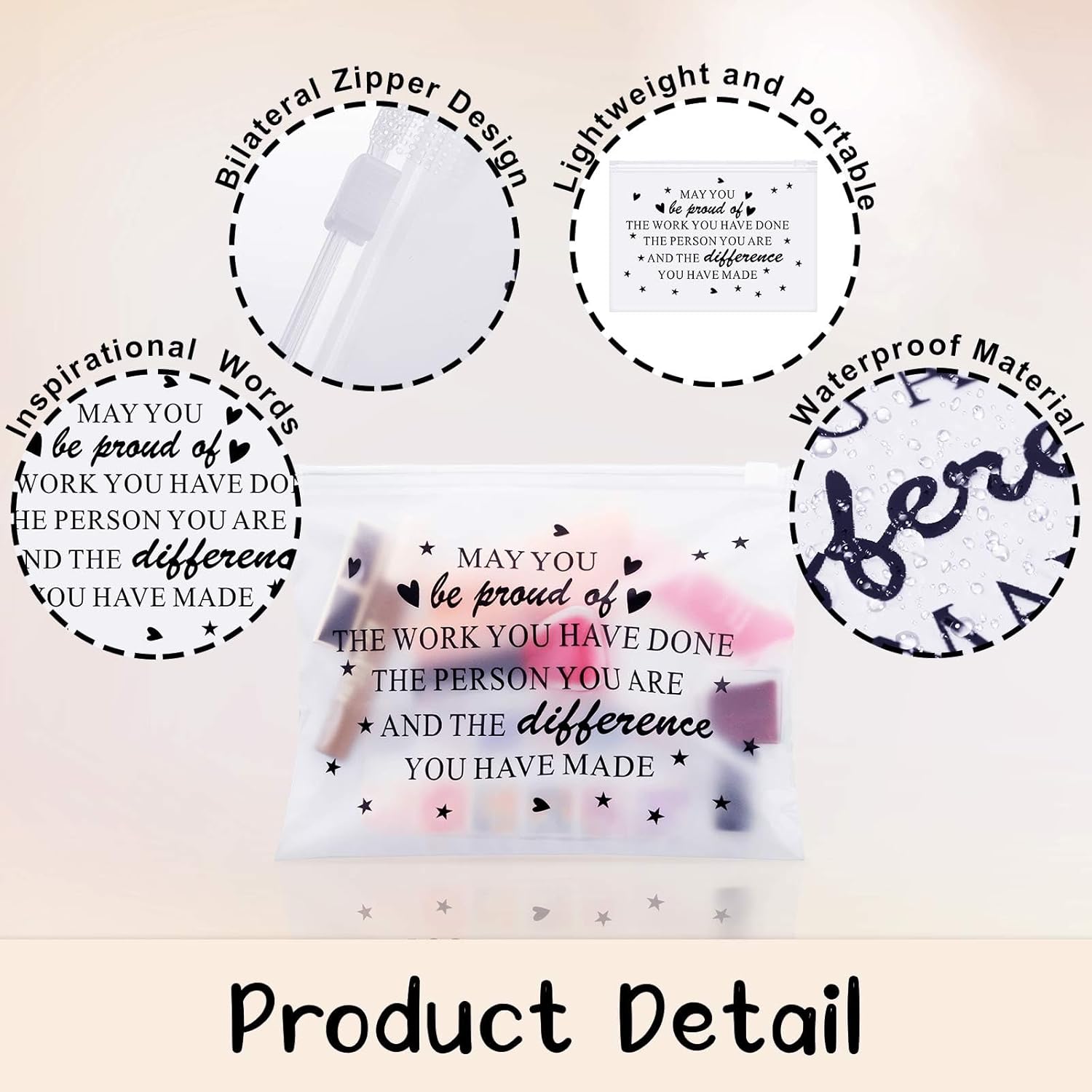 Inspirational Theme Design: our inspirational makeup bags are designed with inspirational quotes, namely [Sometimes You Forget You’re Awesome], bringing you a sense of youth, cheering you up and inspiring you to love life more when you are in trouble