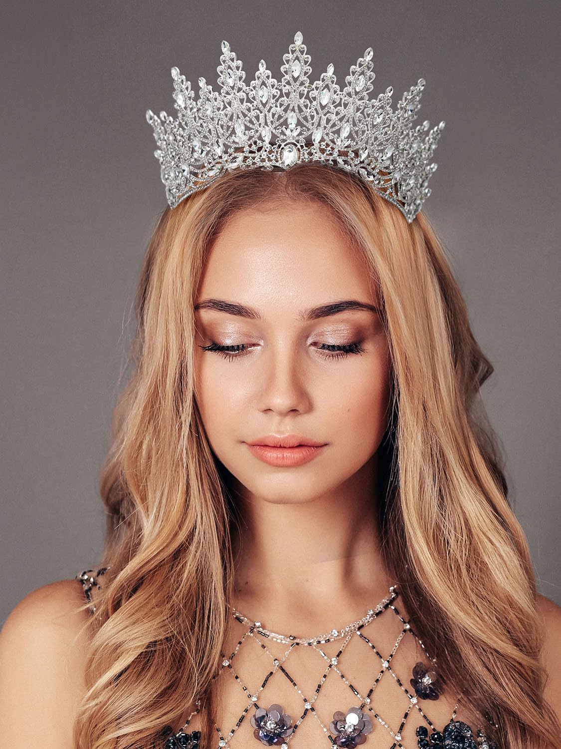 ♕ Tiara measures approx. 3.7 inches in height, 5.7 inches in diameter. Weight: 0.47 lb, crafted specifically to fit women and girls and perfectly fit in your glamorous hairstyles.