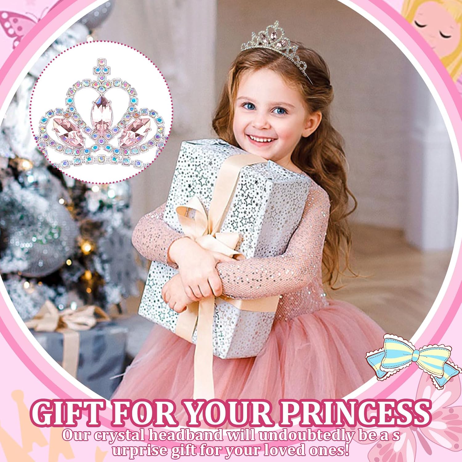 Princess Crown Headband: The silver girl’s rhinestone headband is set with high-quality rhinestones, shining on the head and making your girl stand out.
