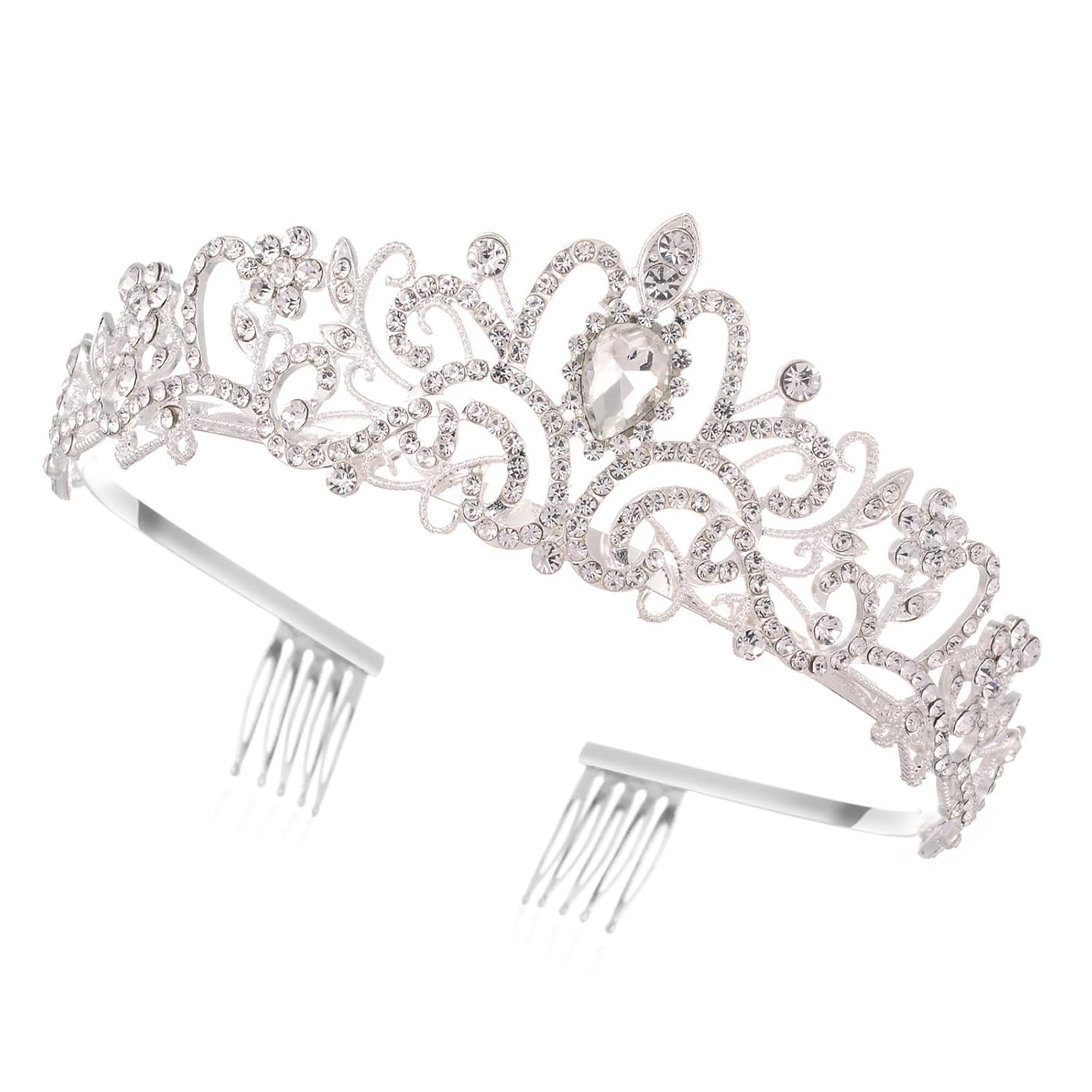 Silver Crystal Tiara Crowns For Women Girls Princess Elegant Crown with Combs Women’s Headbands Bridal Wedding Prom Birthday Party Headbands for Women