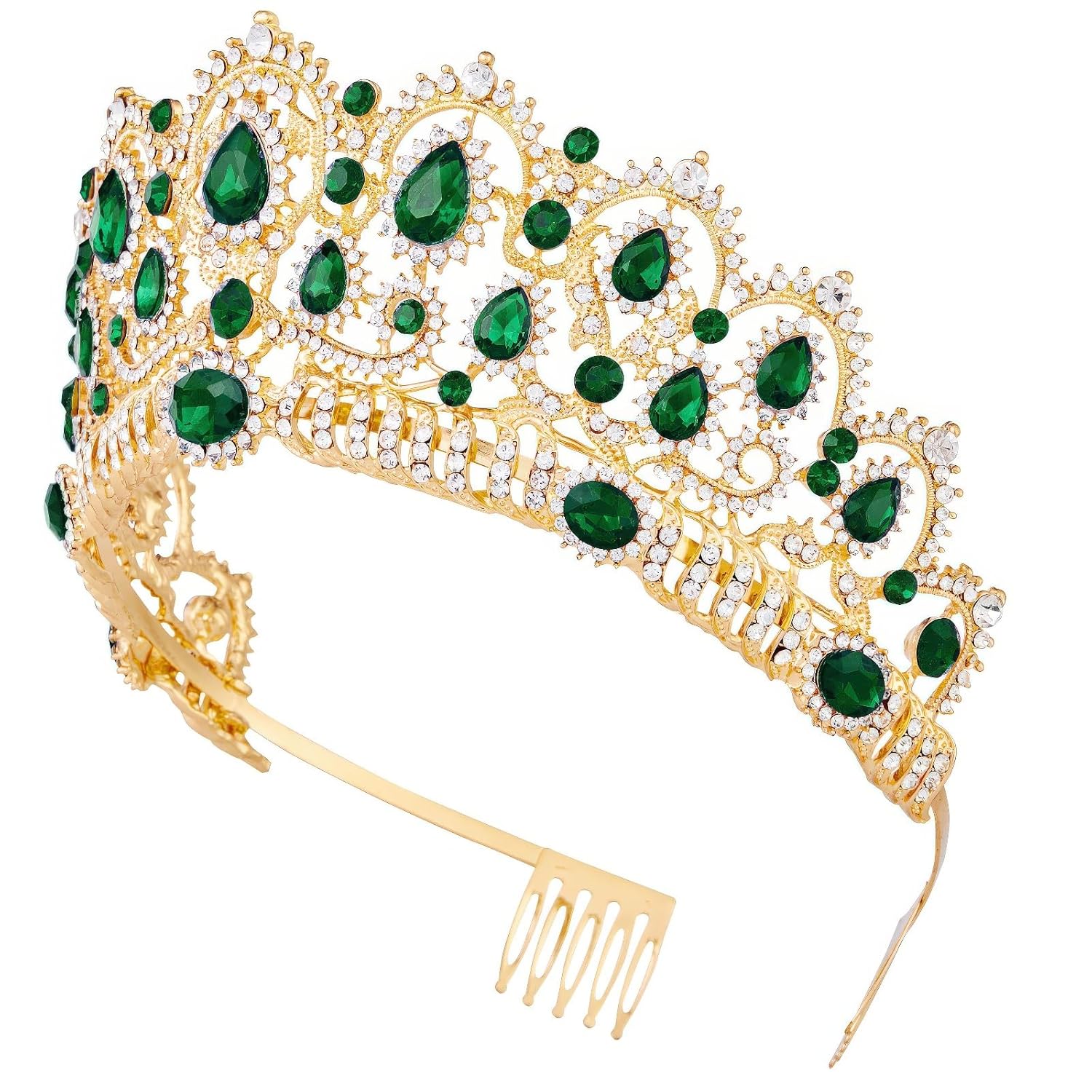 ♕All Vofler Crowns are 100% handcrafted,this retro queen crown is handmade by durable gold-plated alloy,green rhinestone(emerald) and sparkle crystals -shining bright like diamond !