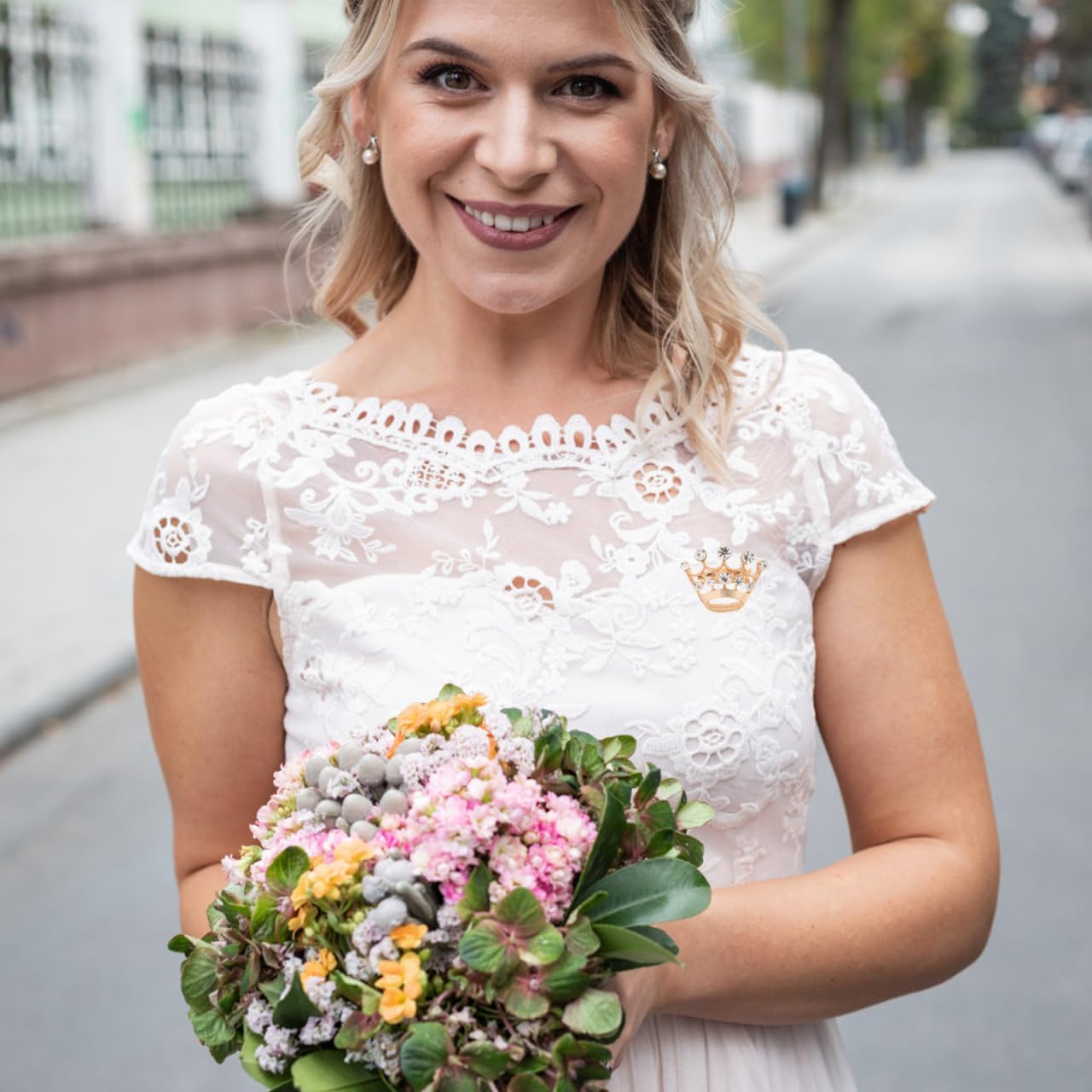 12 * Fashion Diamante Wedding Party Pageant Tiara Crown Corsage Brooch Pin (Gold)