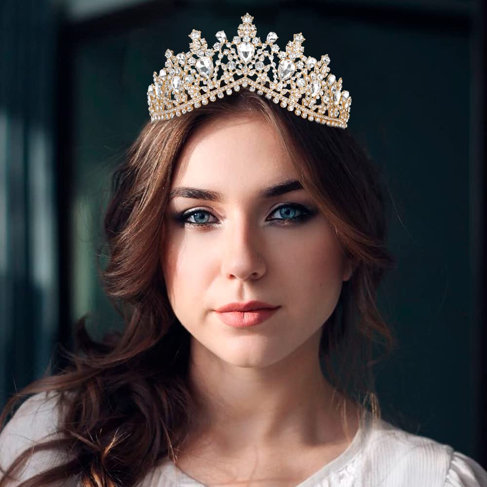 ♕ Size – Luxury bridal tiara is gold, approximately 2.75 inches in height, 5.70 inches in diameter. Perfectly suit for any age women and teen girls. This crown is suitable as a traditional crown for adult women.