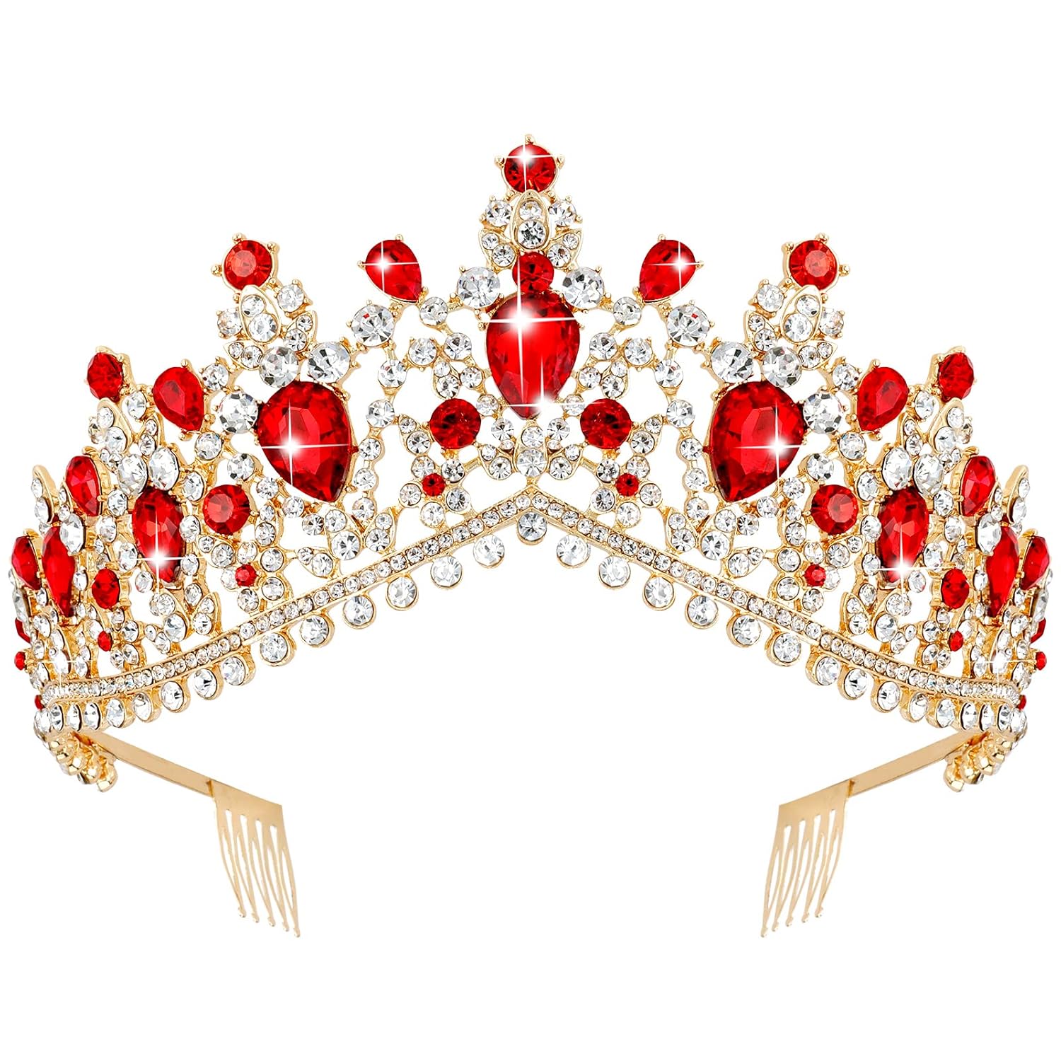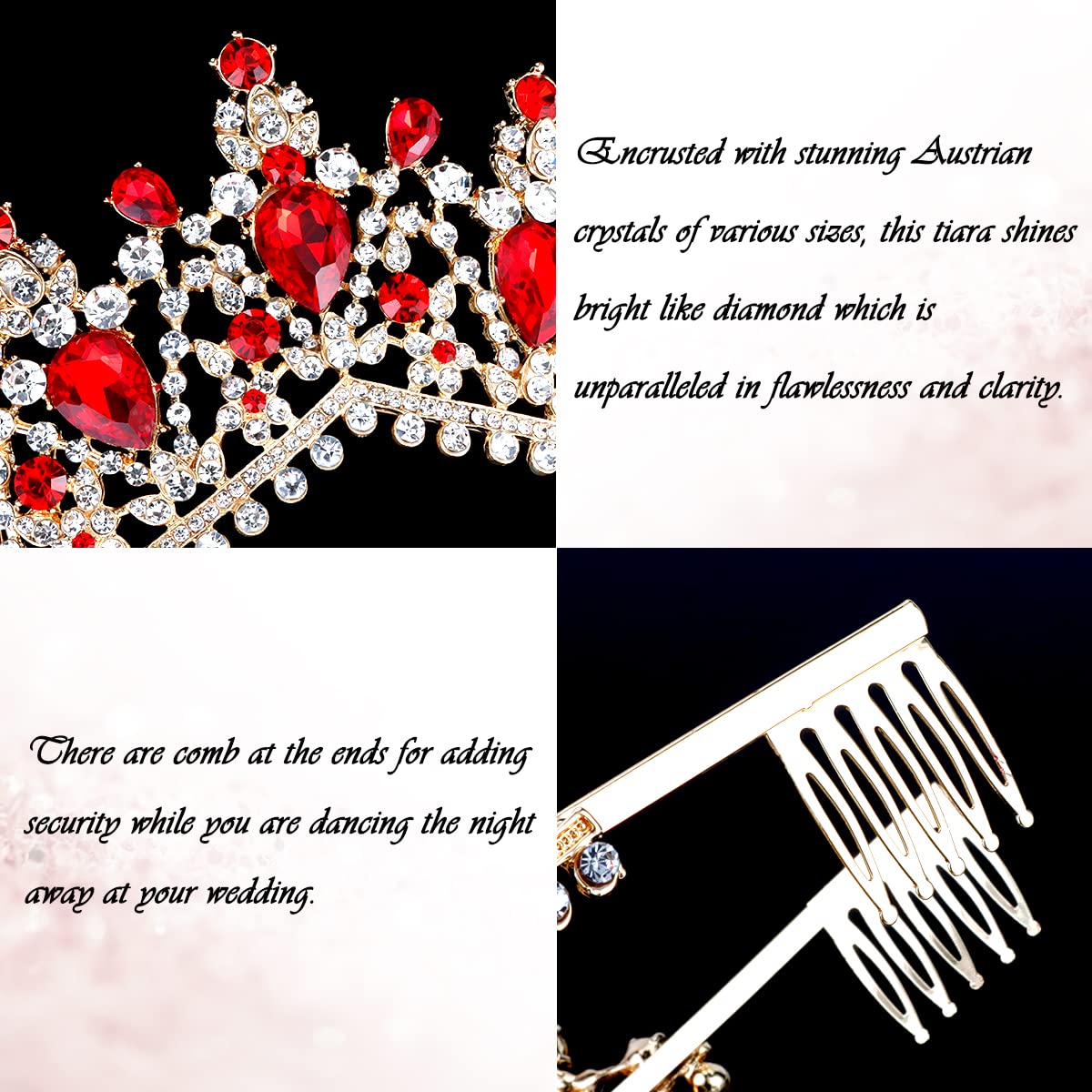 ♕ Size – Luxury bridal tiara is red, approximately 2.75 inches in height, 5.70 inches in diameter. Perfectly suit for any age women and teen girls. This crown is suitable as a traditional crown for adult women.