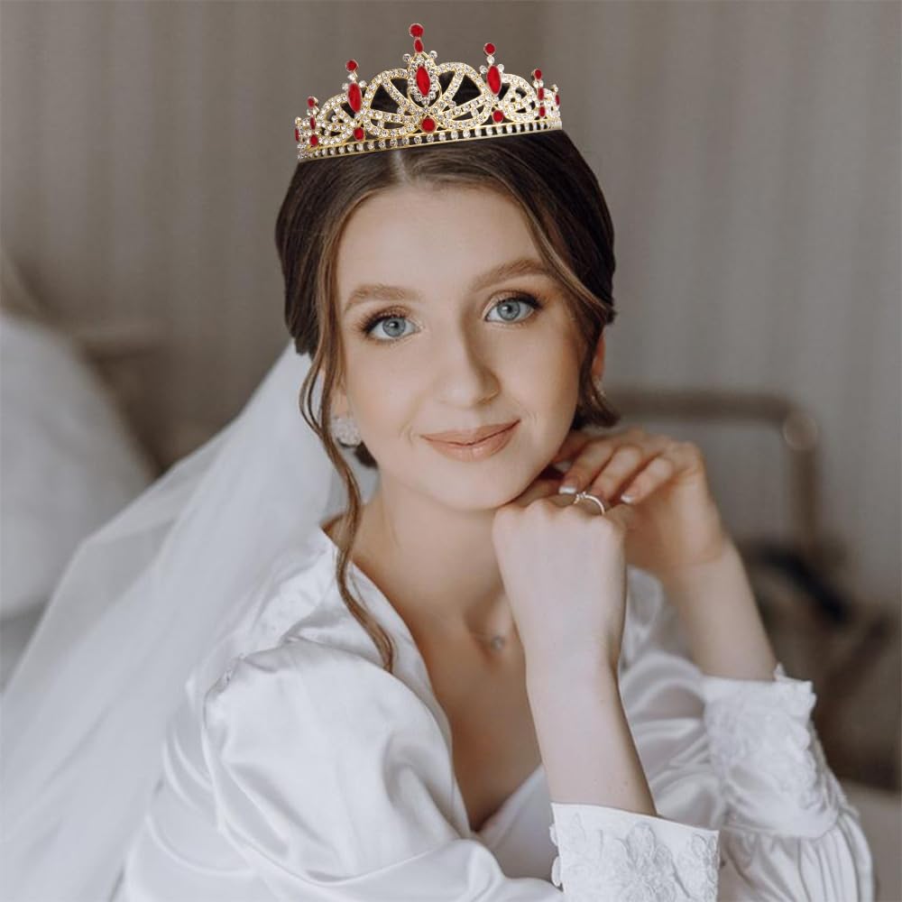 Ideal presents:This red and gold crown for women makes an ideal gift for wives, lovers, mothers, daughters, or friends. It lets them feel like queens or princesses—sure to be loved and cherished by any woman.