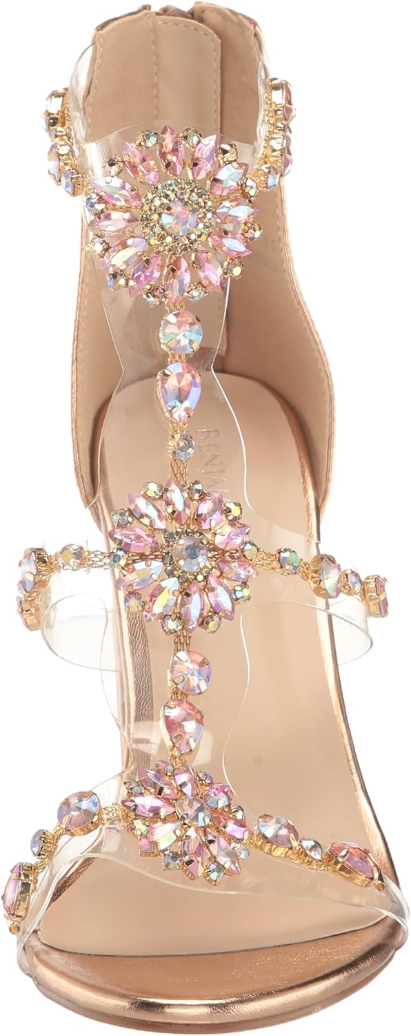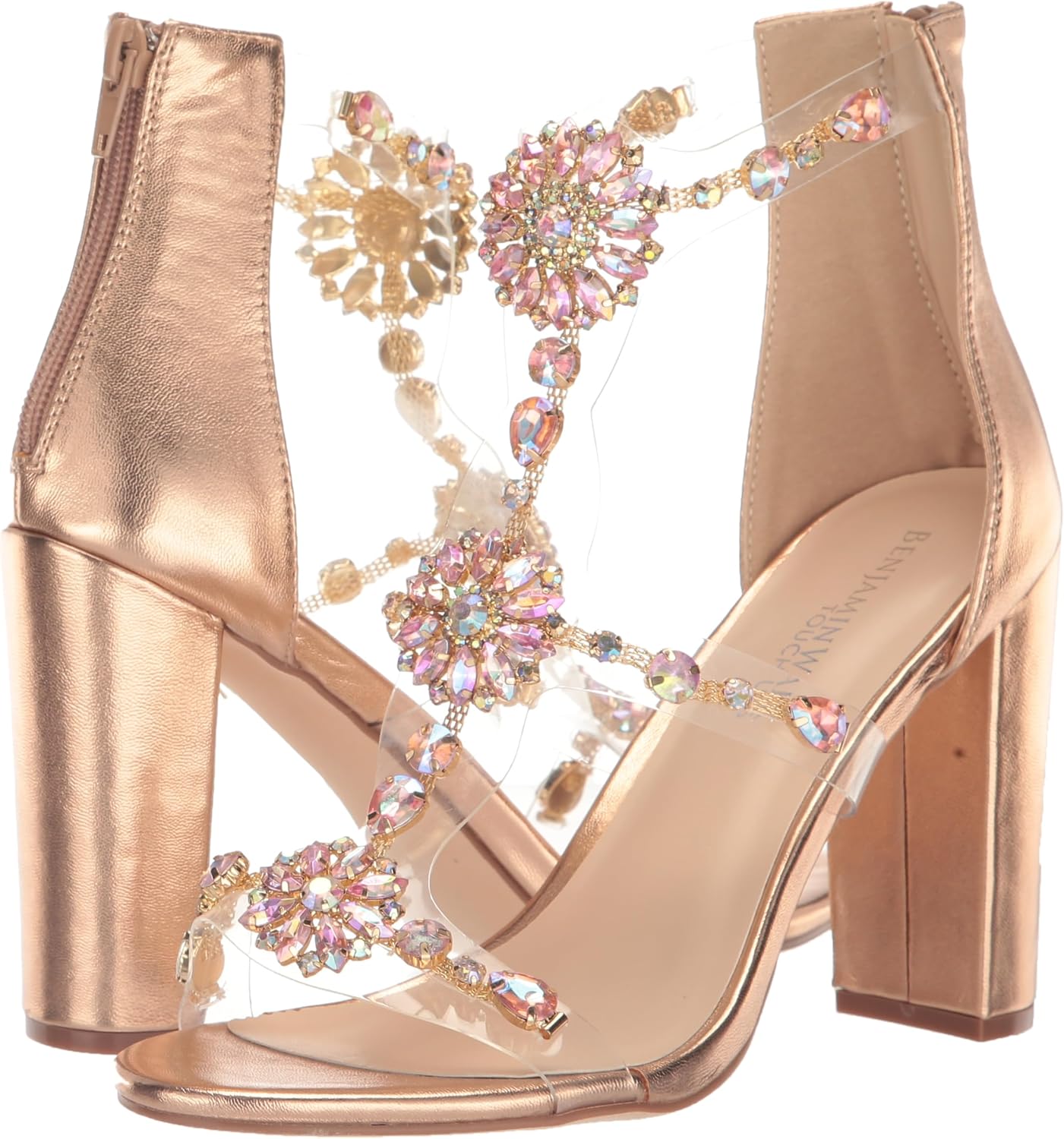 Ara from Touch Ups is a trendy 3.25 inch chunky heel with a jeweled vamp that sparkles all night. Ara is made with a metallic material and a synthetic sole.