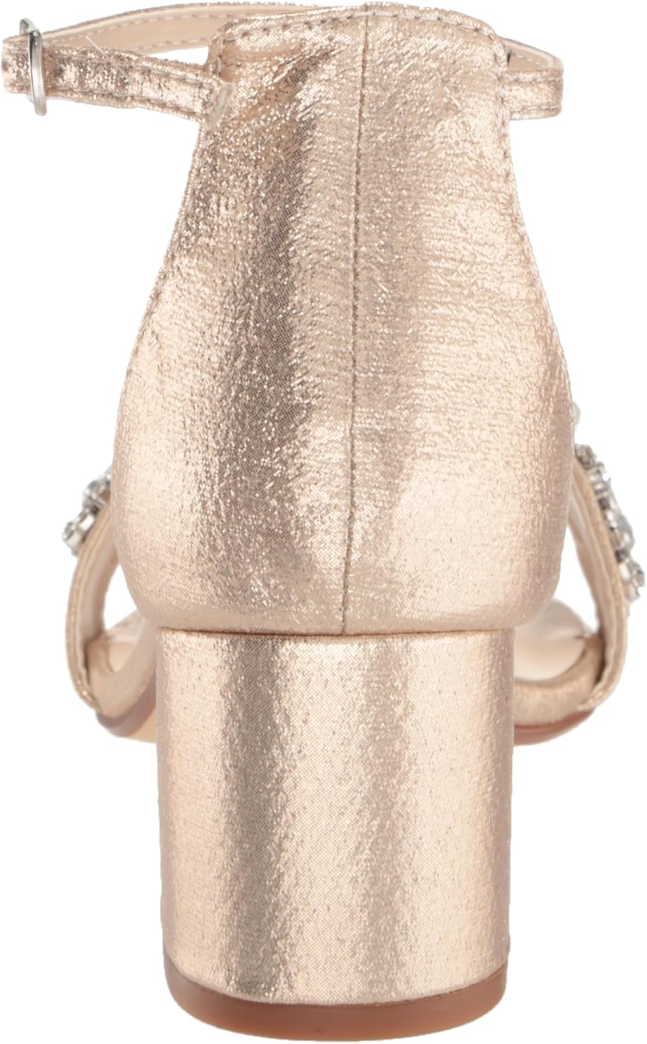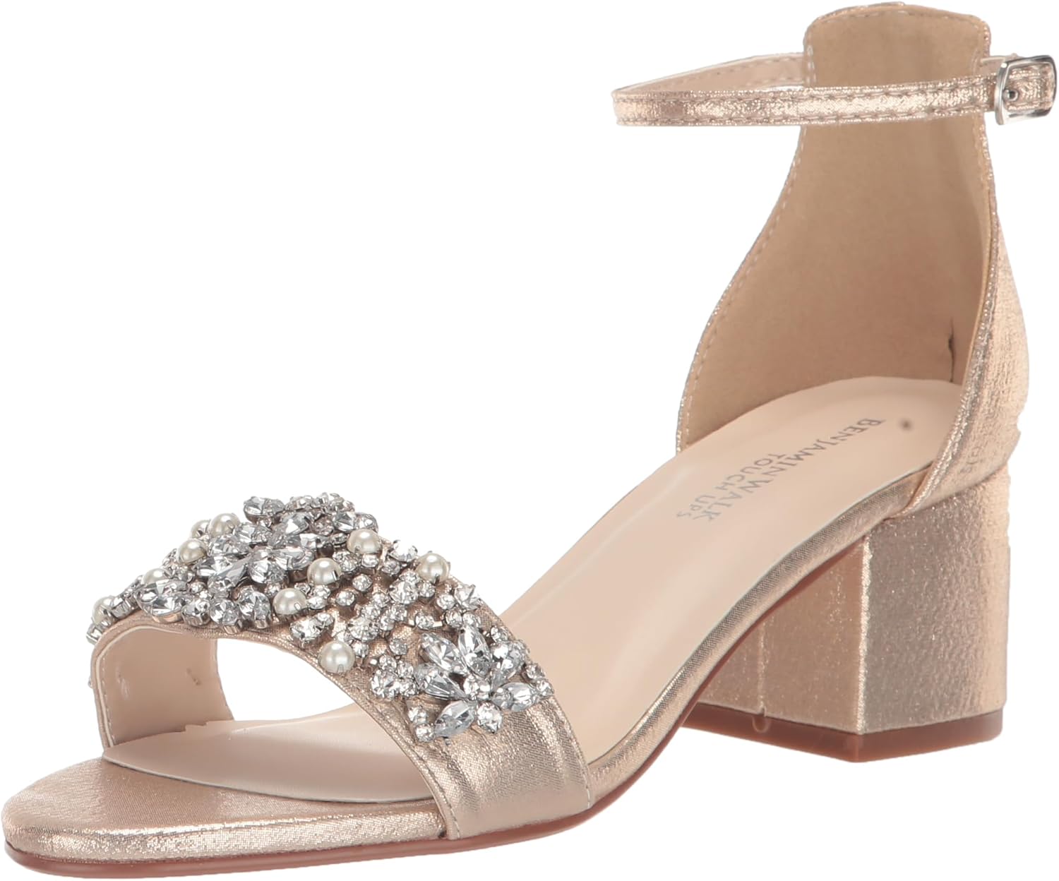 Devon from Touch Ups is a trendy 1.75 inch chunky heel with a heavily jeweled vamp. This style is made with a shimmer material and a synthetic sole.