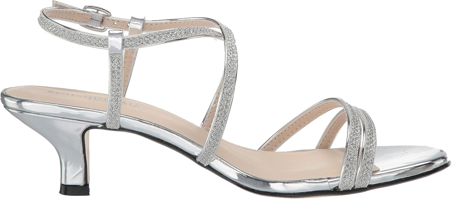 Maisie is a classic strappy sandal design with a comfortable 1.75 inch heel that provides ample stability. Made with a shimmer glitter material, maisie is stylish and practical for any special occasion.
