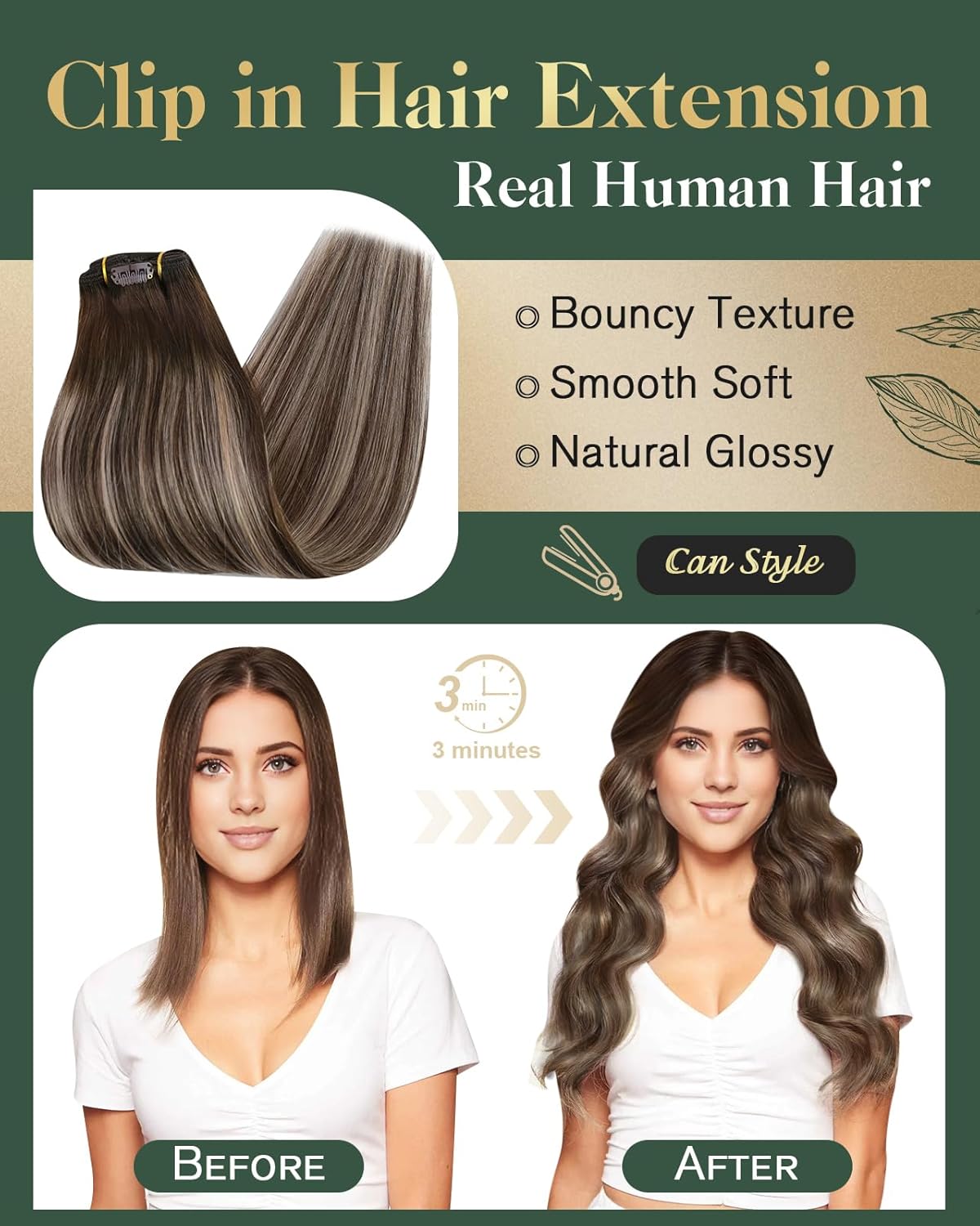 [No Damage to Hair and Comfortable to Wear]Unlike some other hair extension methods,our hair extensions do not involve adhesives or chemicals,they will not damage your natural hair,they are gentle on the hair and scalp.You will get a silky and soft human hair extensions touch,which are not easy to knot or fall off.