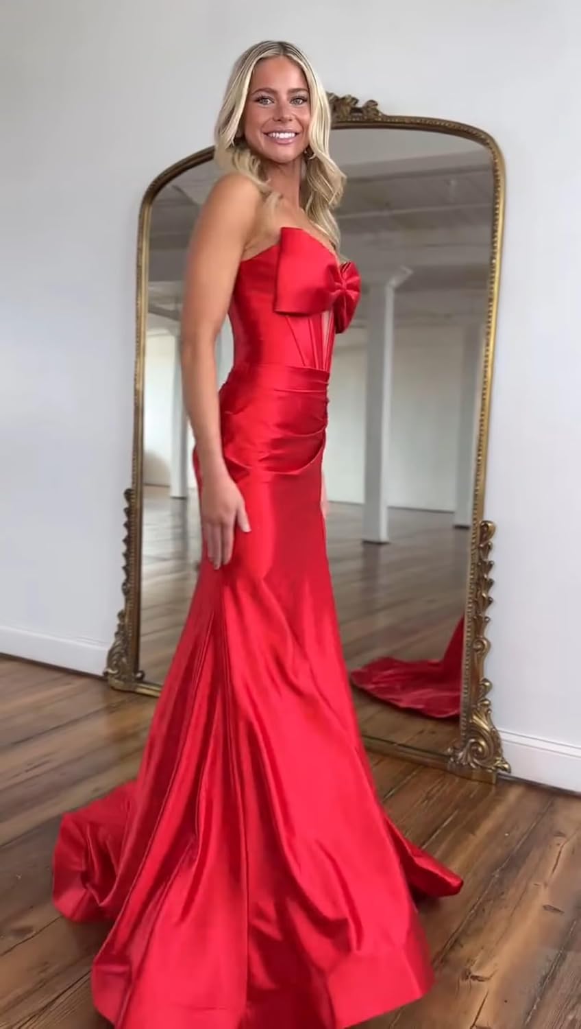 VCCICANY Strapless Mermaid Prom Dresses with Bow for Women 2025