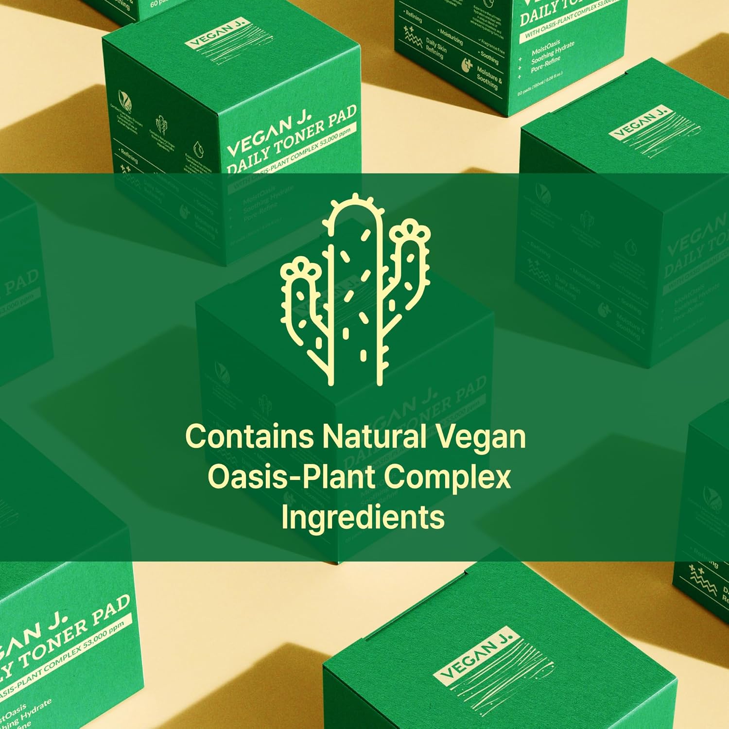 Exfoliate & Hydrate in One Step: The Vegan J Daily Toner Pads feature a dual-texture design—embossed side for exfoliation and smooth side for hydration—helping to refine skin texture and deliver deep moisture all at once.