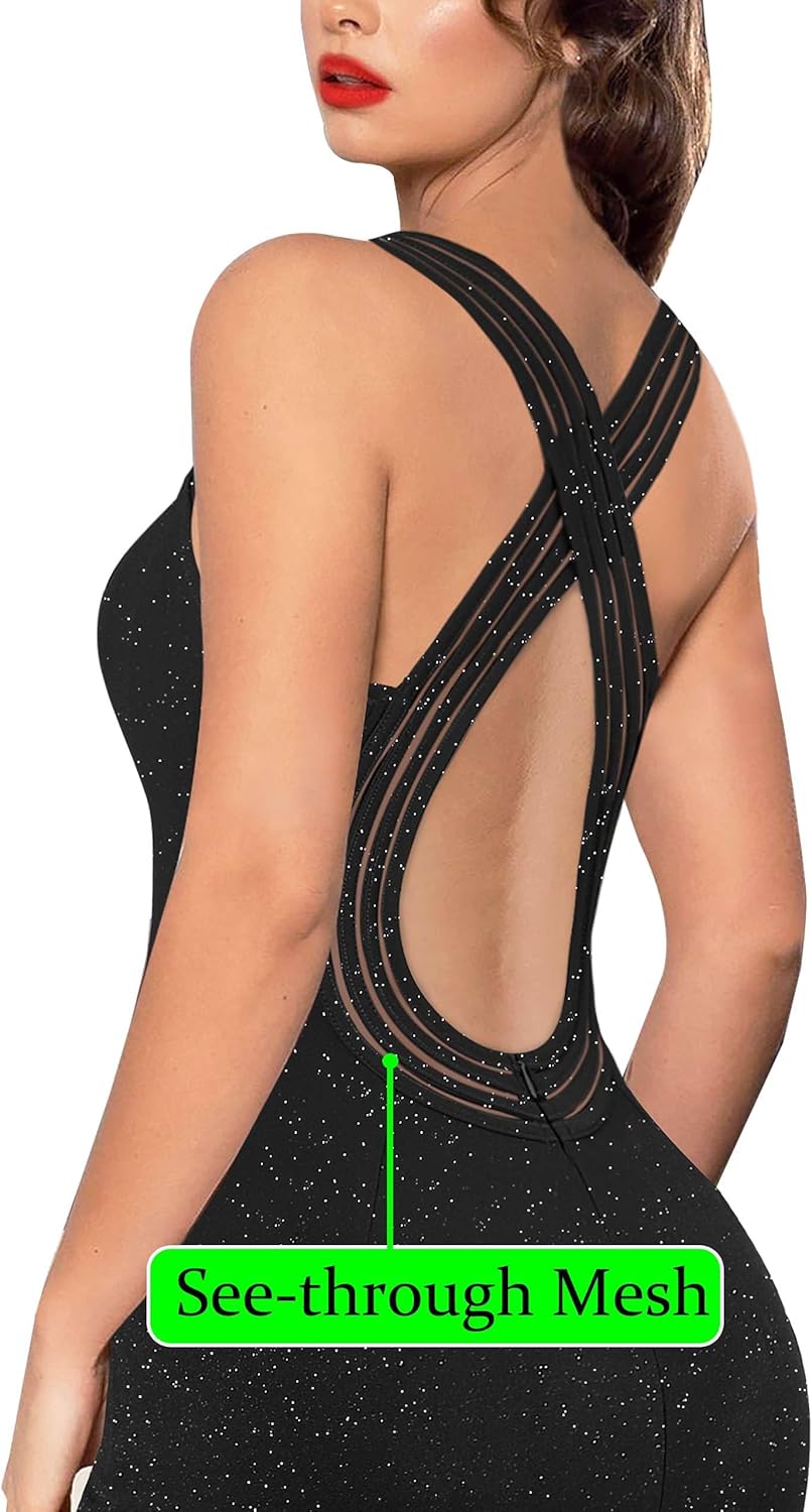 Review: Fit was a little off in spots even when buying a small. There was some extra fabric under the arms that needs to be taken in and the length was a little much unless you are wearing some serious heels so we are hemming it a little. However, the dress fabric is so nice, the sparkles are beautiful, the open strapped back and the deep V with shear black are very sexy. This will be an eye-catching dress for our upcoming dressy occasions. Worth the extra cast to adjust a little.