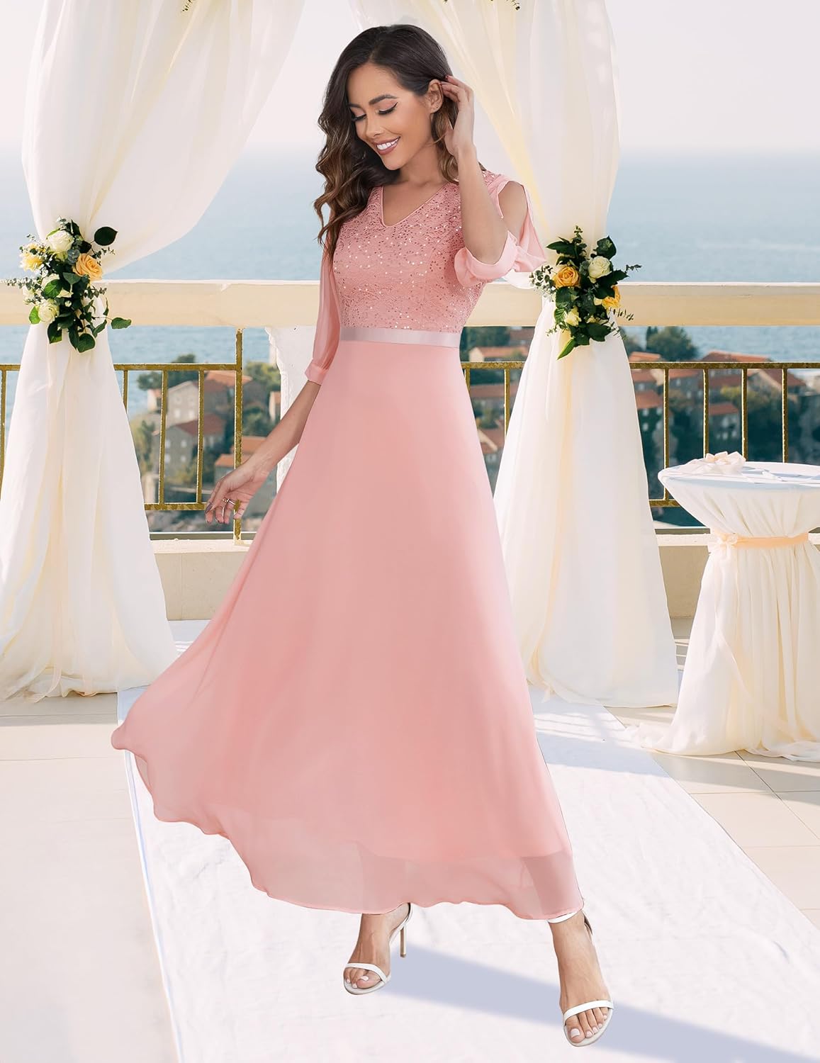 This sequin long dress is perfect for numerous events, including prom, birthday, evening party, and bridesmaid duties