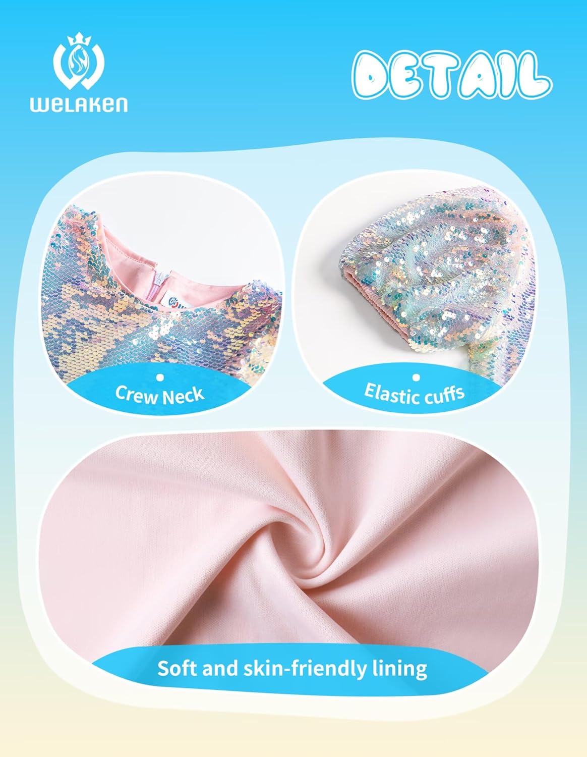 Make her special moments even more magical with our Girls’ Gradient Sequin Dress! This enchanting dress features dazzling gradient sequins that sparkle with every move, and the puff sleeves with elastic hems add a playful touch. The hidden back zipper ensures a seamless look, while the full lining provides comfort for all-day wear. Ideal for parties, birthdays, family gatherings, and playtime, this dress is sure to make your little one shine bright. Let her sparkle and shine in style!