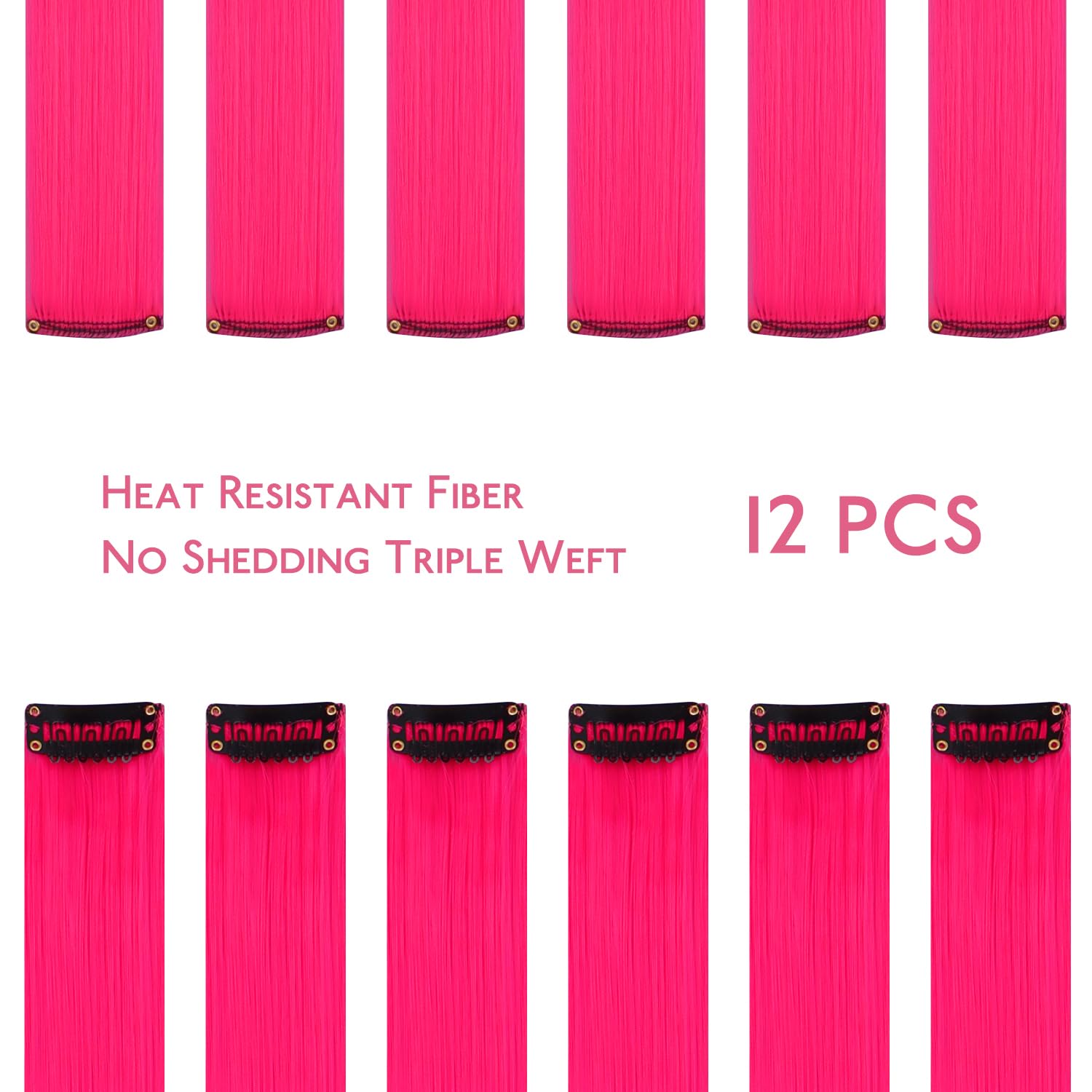 【Colored Clip in Hair Extensions】 Colored clip in hair extensions Crafted from high-quality synthetic heat-resistant fiber, mimic the natural look, movement, and feel of real hair without harsh chemical dyes. Designed with a durable triple weft for seamless blending with your natural hair, they ensure your hair remains undamaged and healthy. Odor-free and worry-free, these colorful hair are pleasant choice for enhancing your hairstyle.