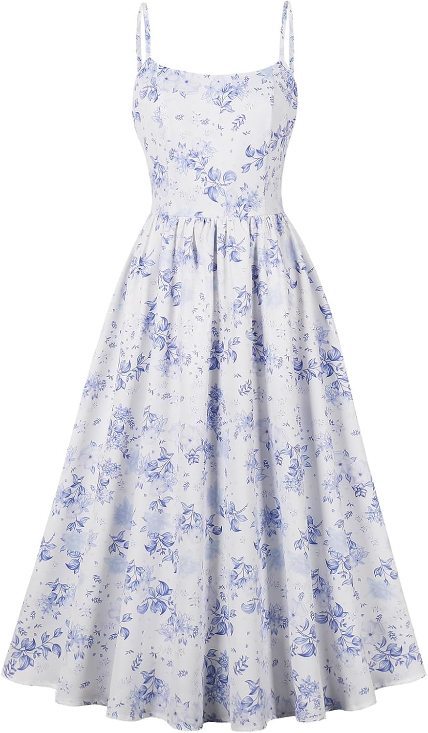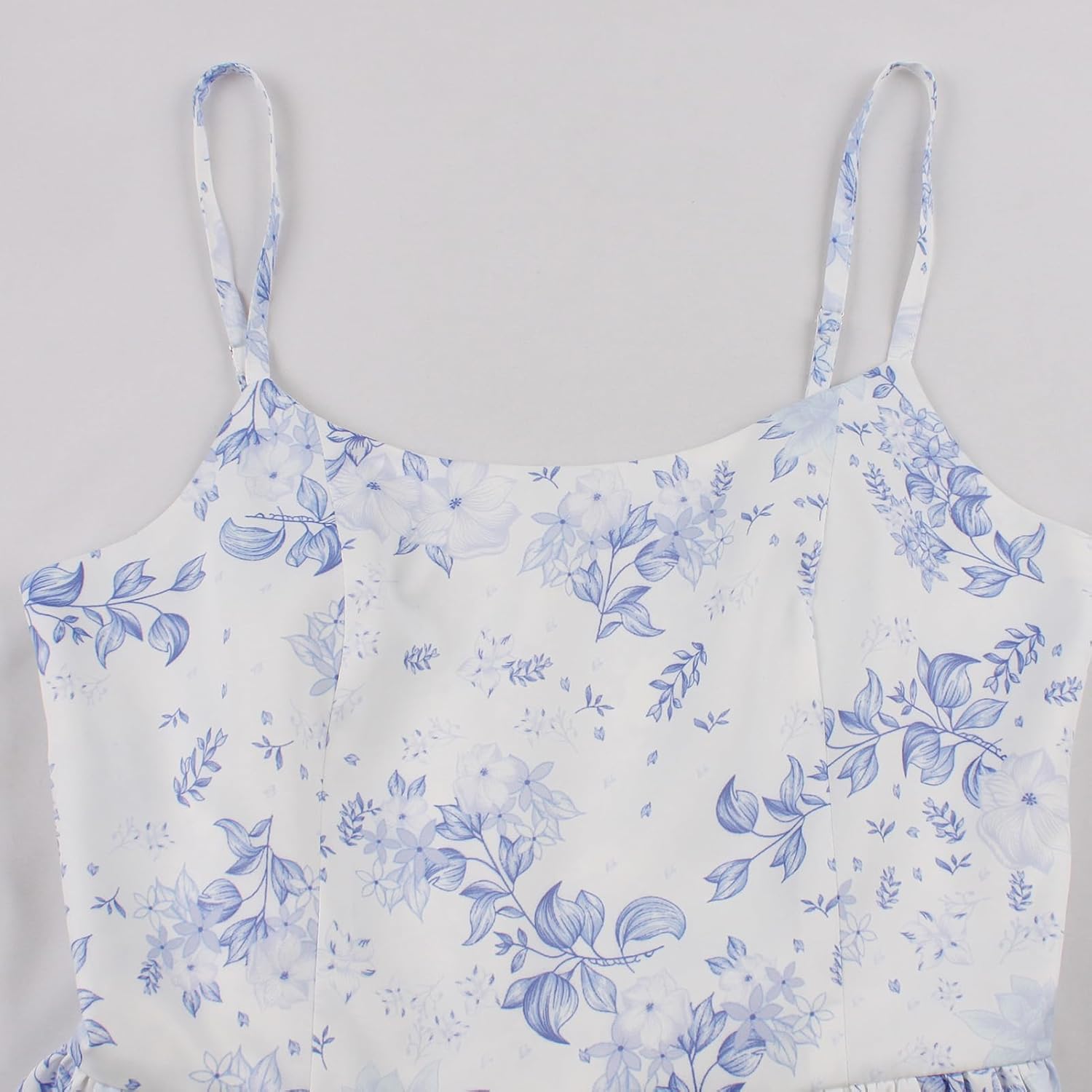 Women Floral Corset Dress Low Cut Spaghetti Straps Summer Dresses