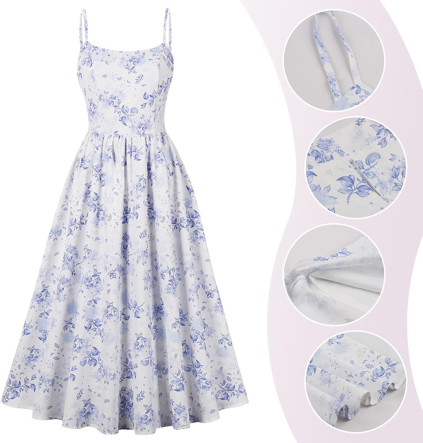 Women’s Summer Sundress Boho Dress Sleeveless Ruffle Midi Dress