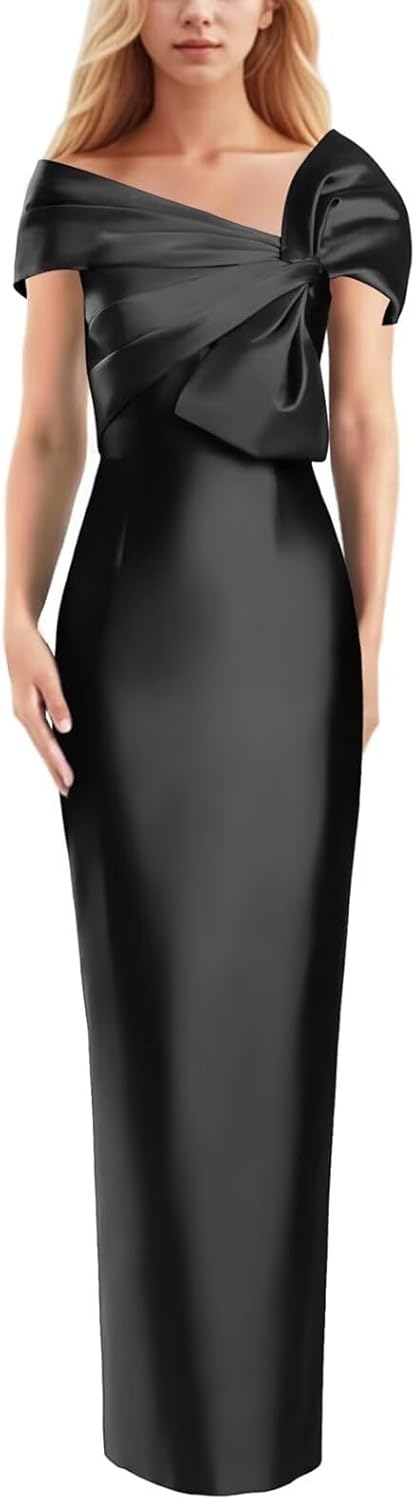 Mermaid Prom Dress for Women Off Shoulder Simple Wedding Guest Dresses with Bow