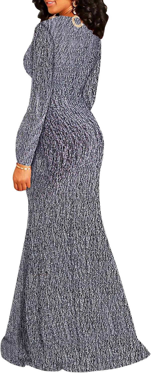 Sexy Sparkly Formal Dress for Women V Neck Sequin Glitter Maxi Long Dresses