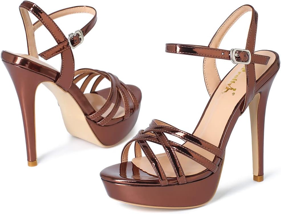 Brand: YooPrettyzColor: Black, Bronze, Burgundy, Gold, Champagne, Grape, Navy, Rosegold, Silver, WhiteUpper: Synthetic or Patent leatherLining: Smooth synthetic liningFootbed: Lightly padded footbedSole: Durable rubber soleHeel height: Approxi 12.5 cm/5 inSize: US3-US10.5