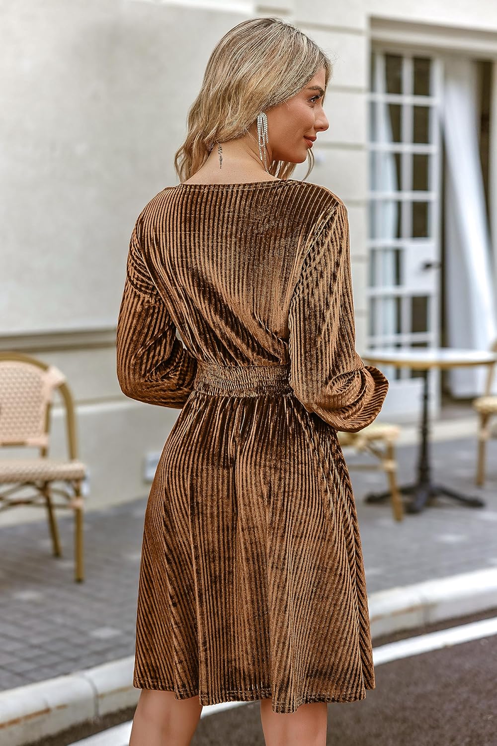 Zeagoo Womens Velvet Dress 2023 Long Sleeve V-neck Dress Midi Length Dress