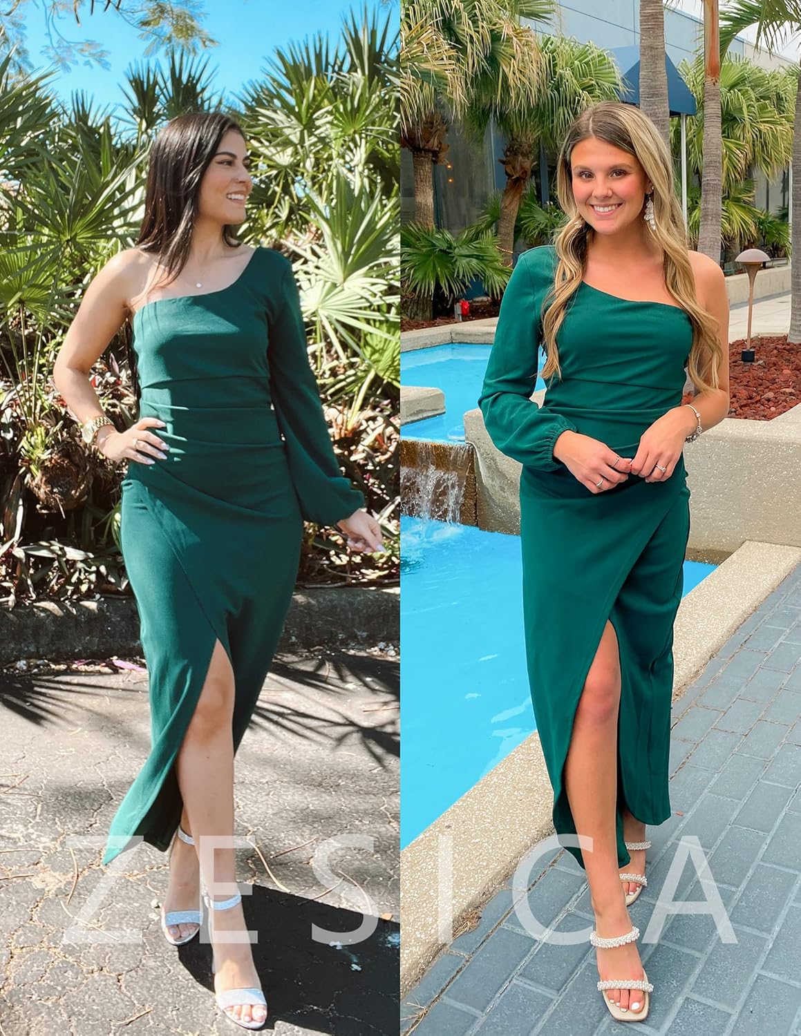 Feature: Long Sleeve/One Shoulder/Sleeveless, Ruched, Wrap Hem, High Side Split, Slim Fit, Bodycon, Solid Color, Silky